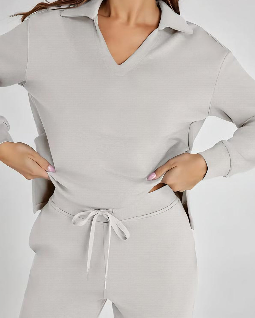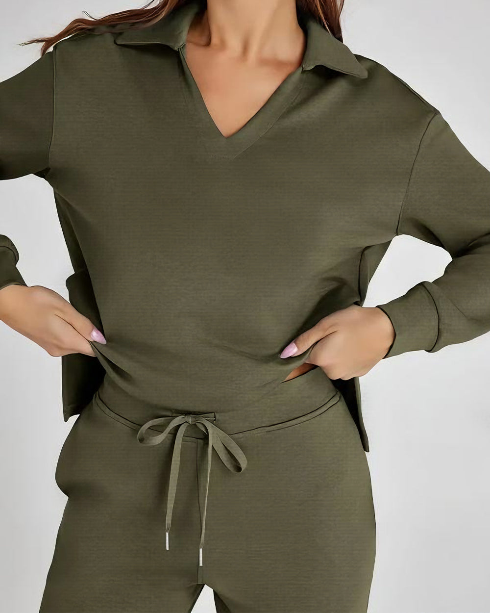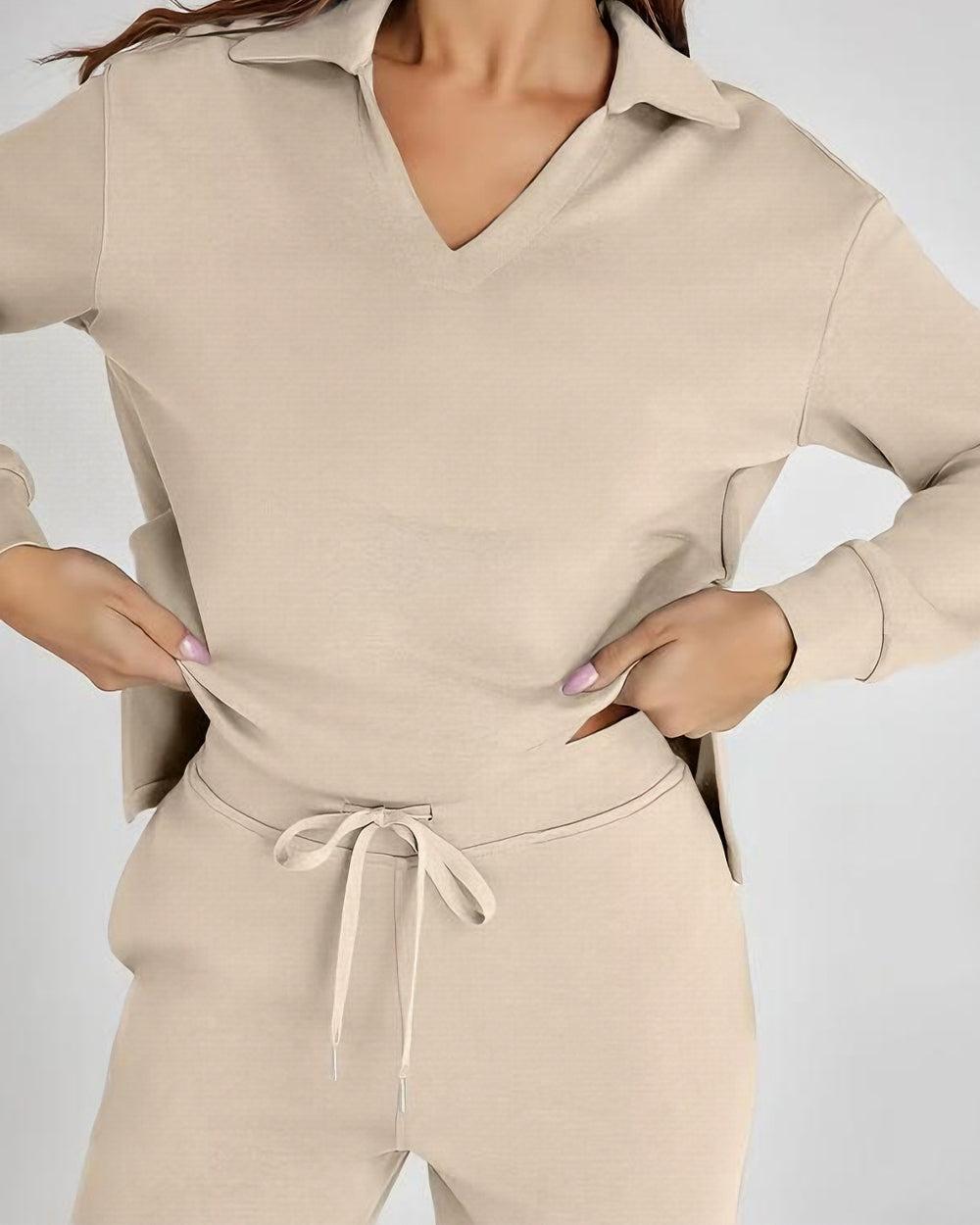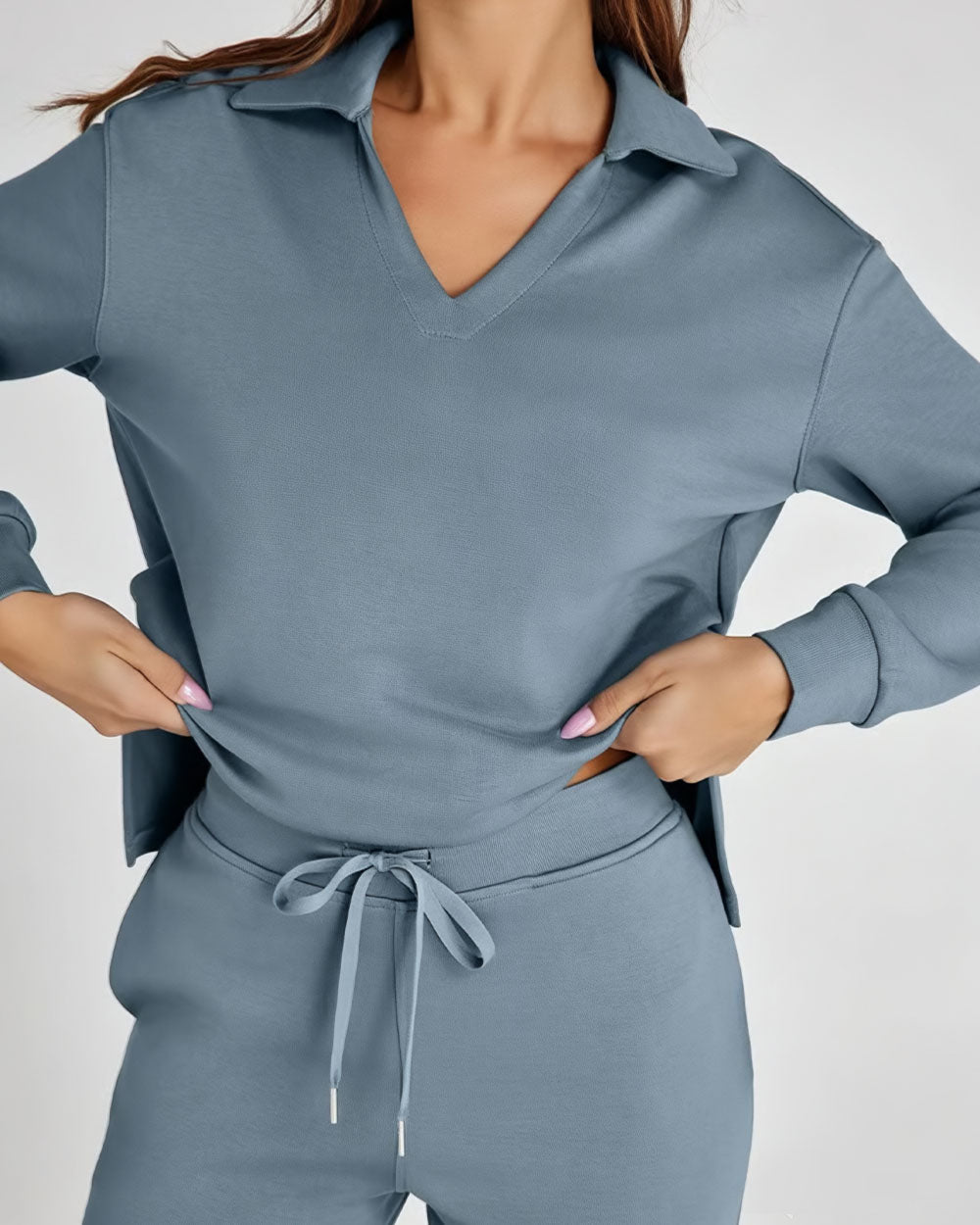 Women's Long-Sleeve V-neck Sweatshirt with Pockets