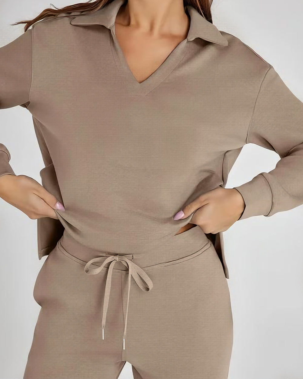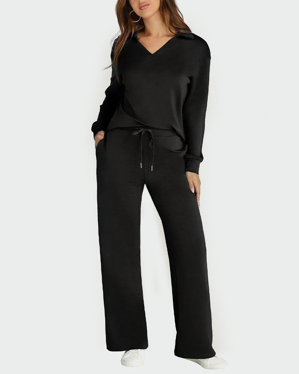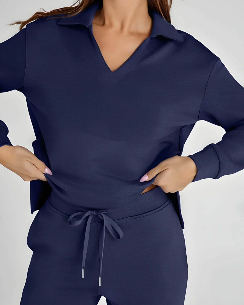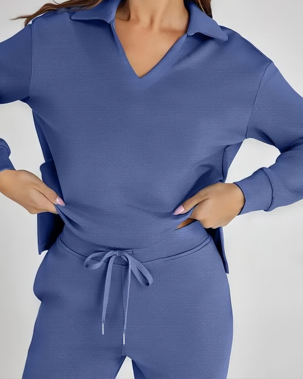 Women's Long-Sleeve V-neck Sweatshirt with Pockets