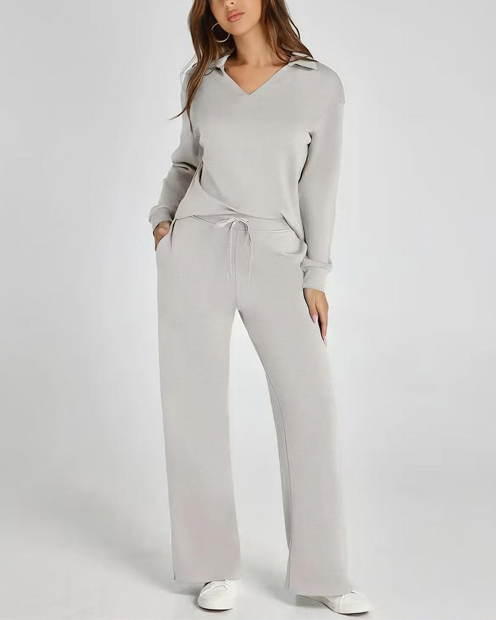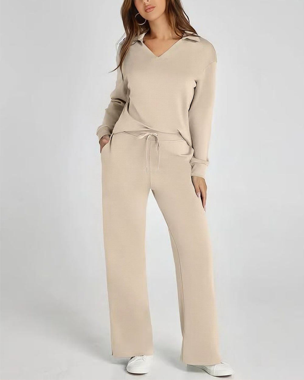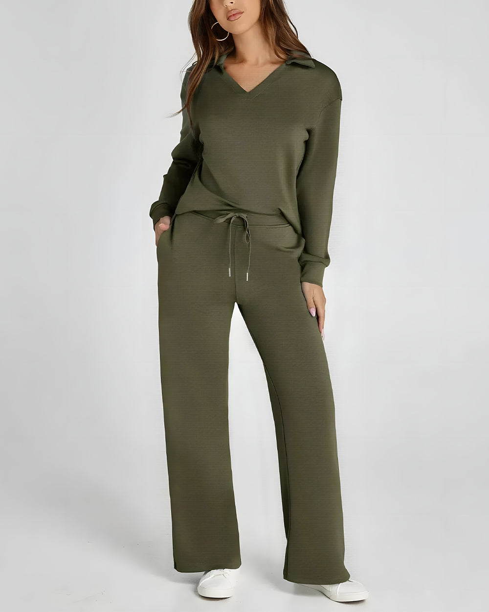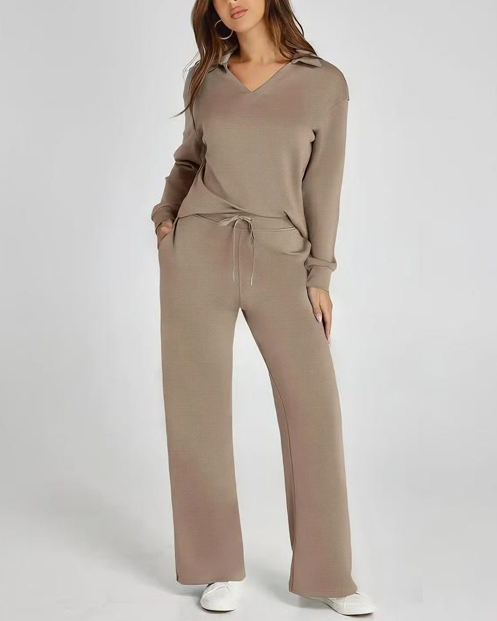 Women's Long-Sleeve V-neck Sweatshirt with Pockets