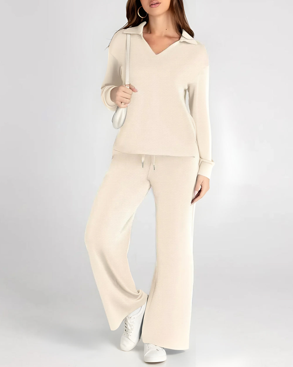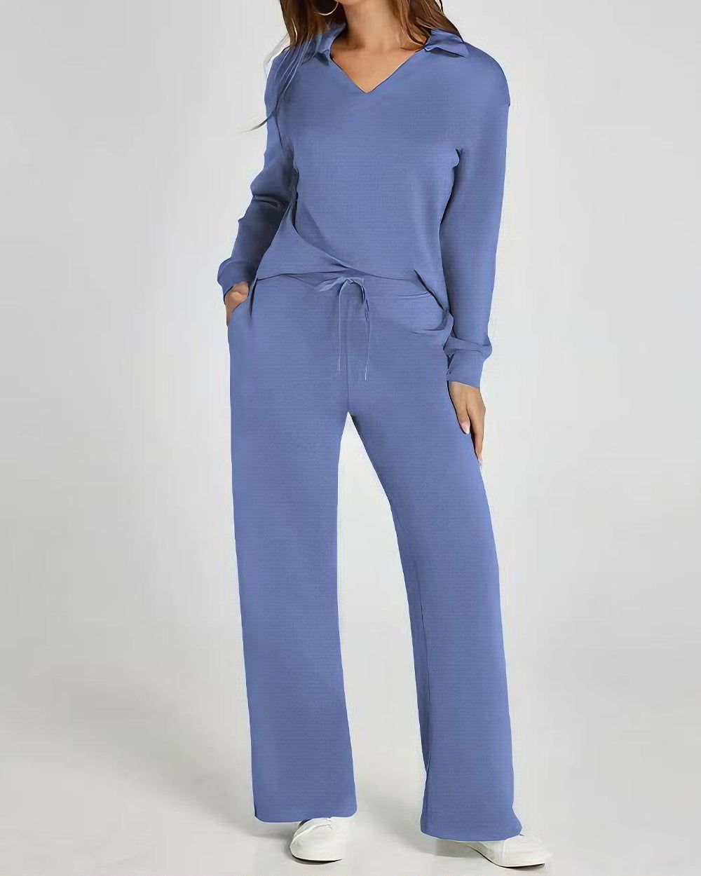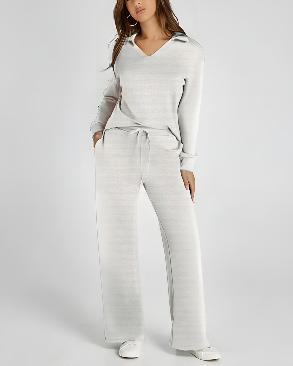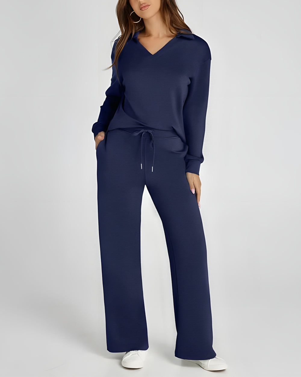 Women's Long-Sleeve V-neck Sweatshirt with Pockets