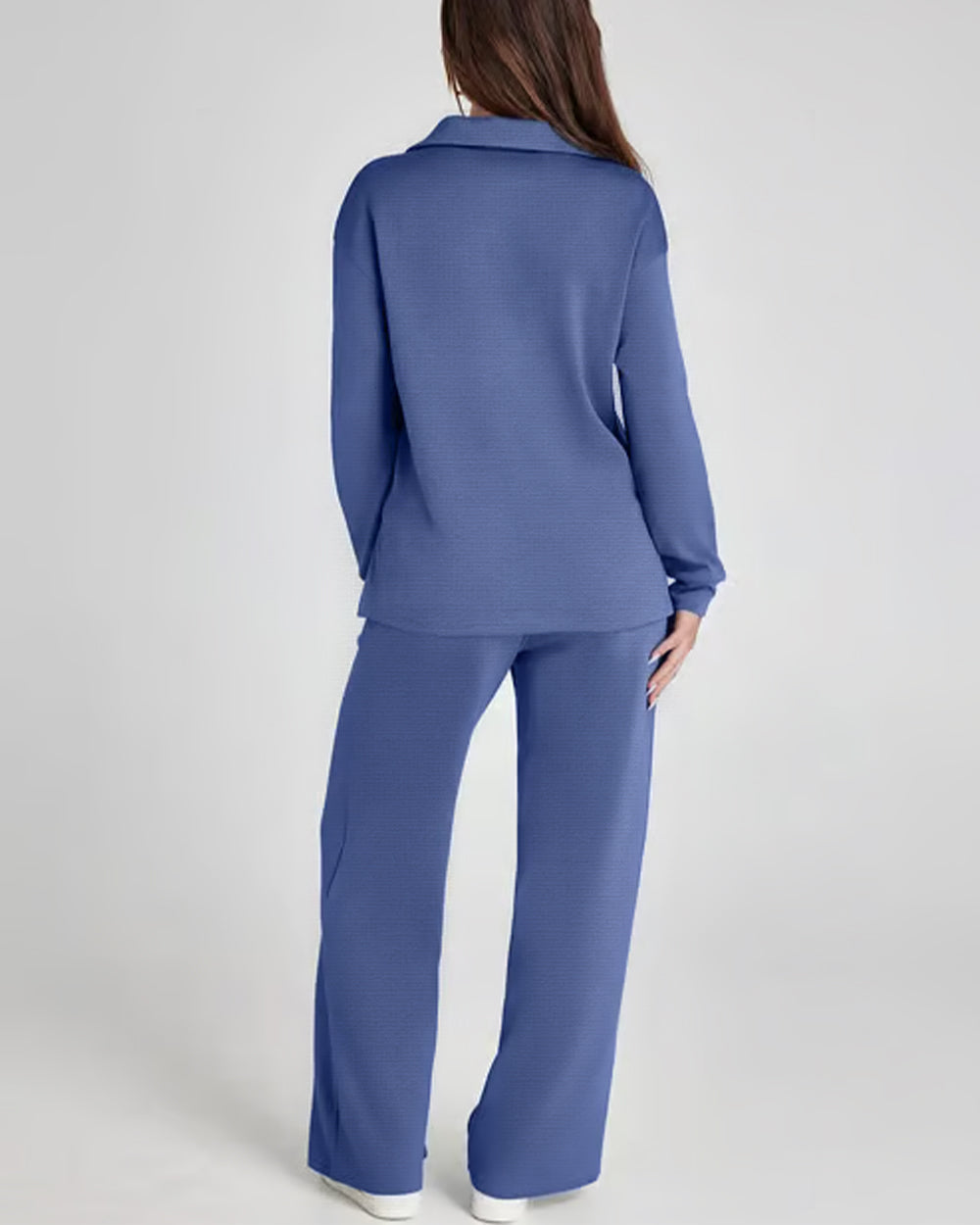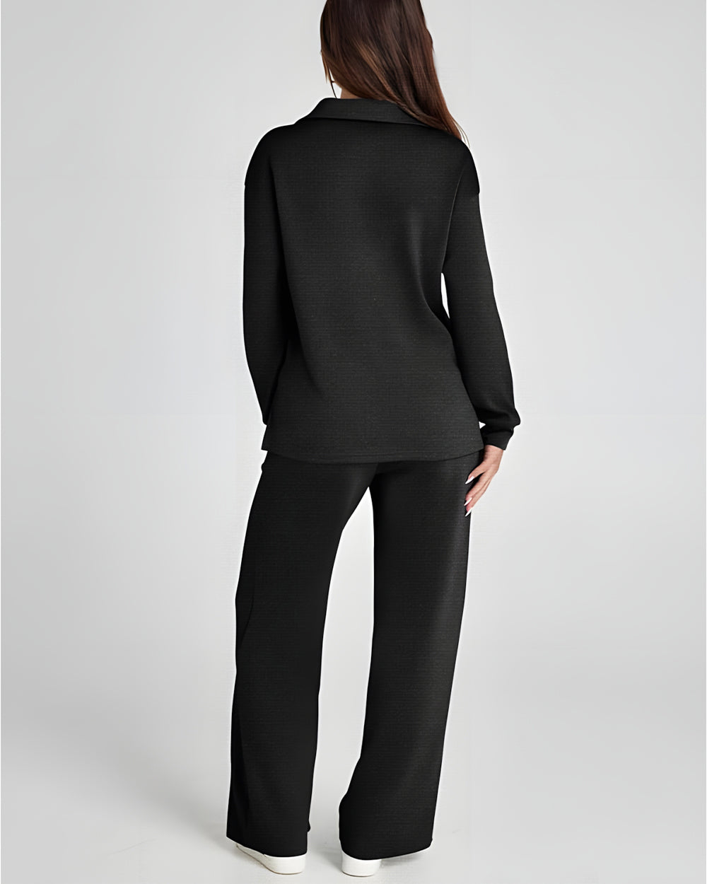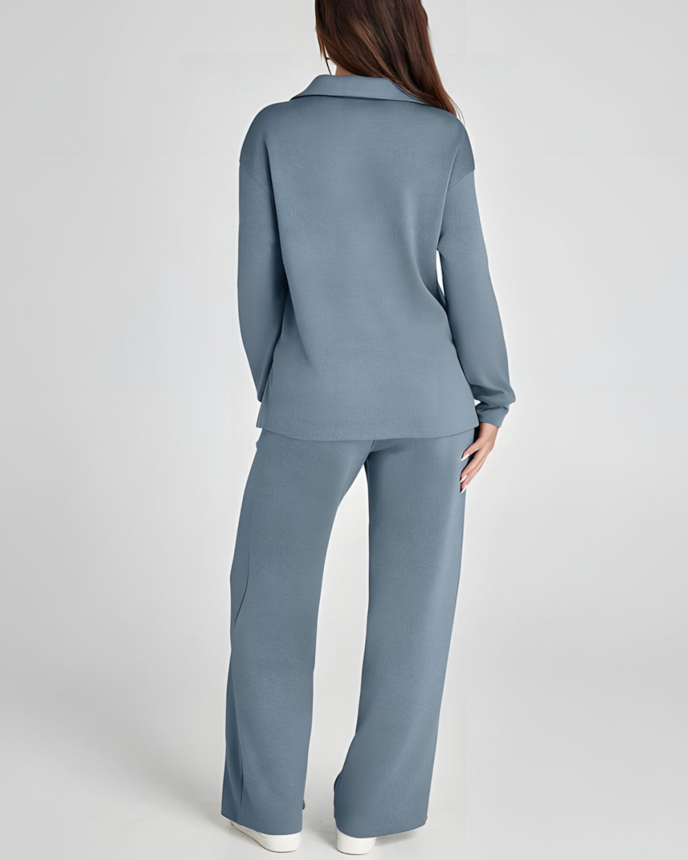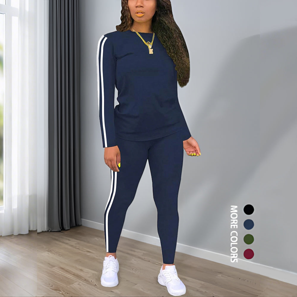 Women's Striped Print Long Sleeve Top & Pants Two-piece Set