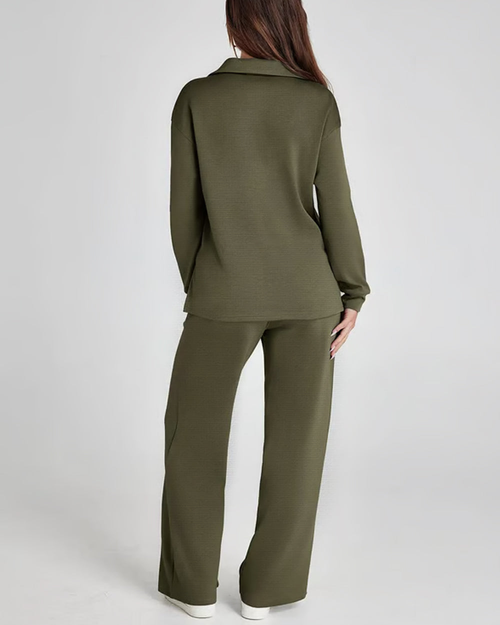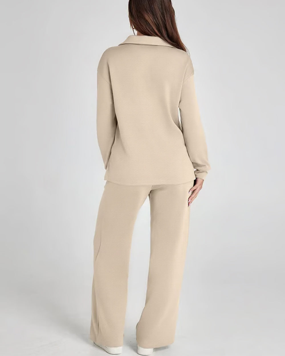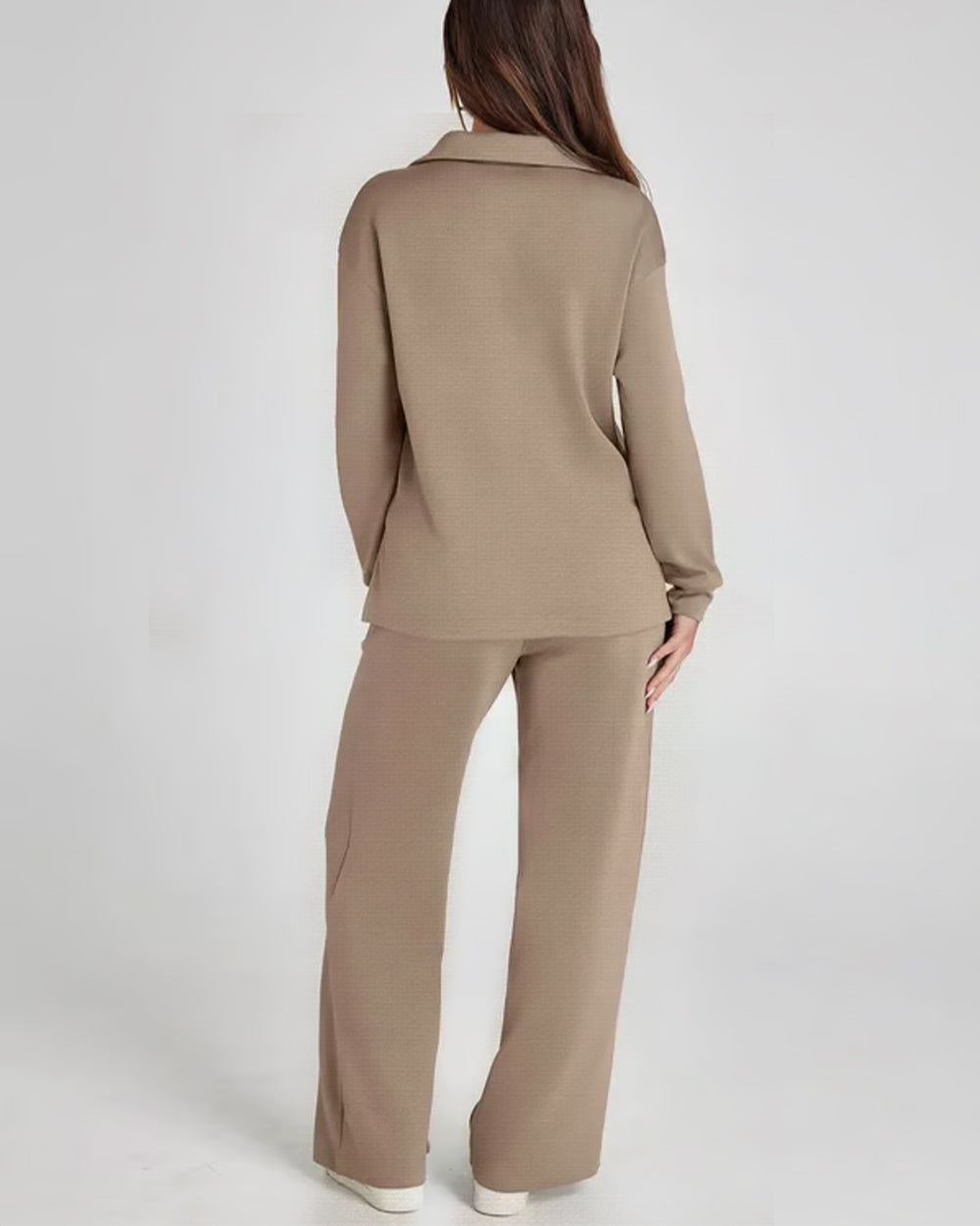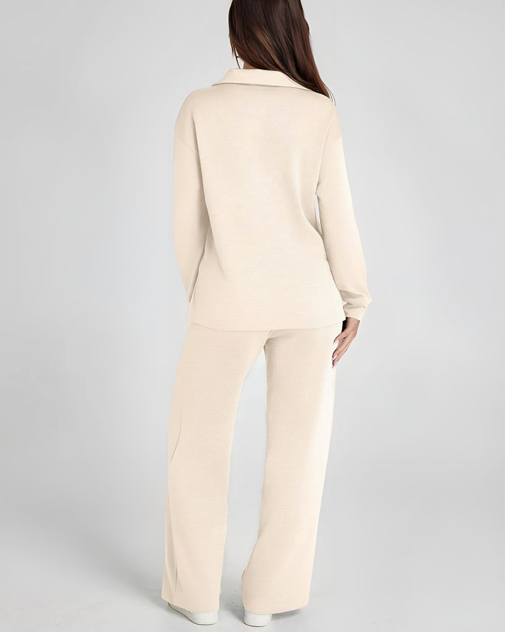 Women's Striped Print Long Sleeve Top & Pants Two-piece Set