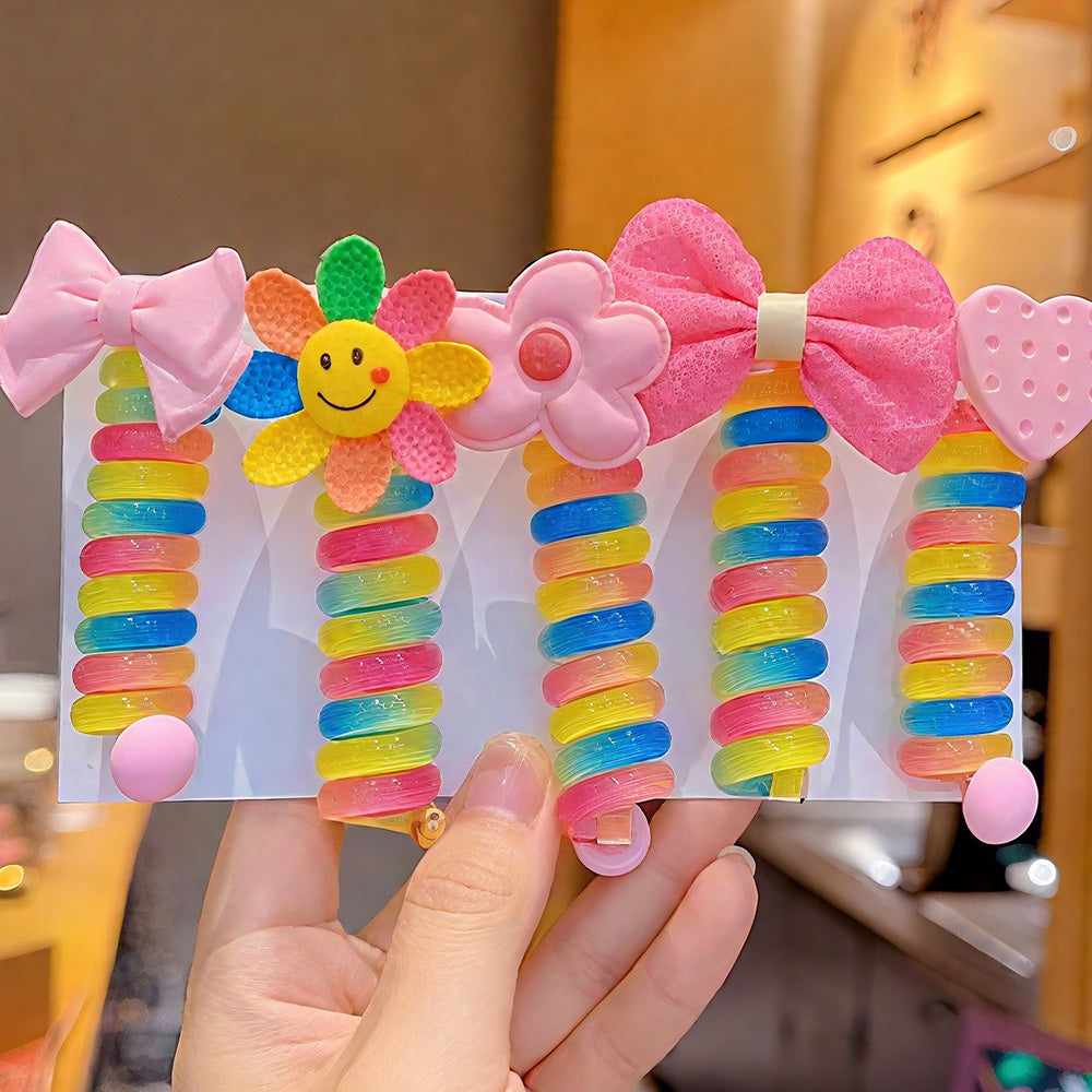 Try our colorful phone cord hair ties for your daughter! Cute cartoon and different flower patterns, small and lightweight, satisfy the perfect match of girls' various clothes.