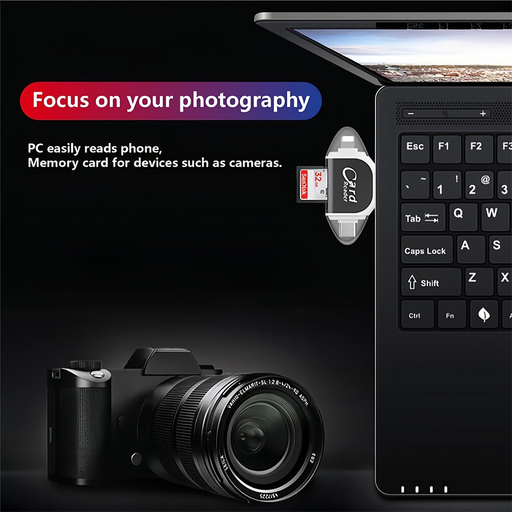 📲This versatile card reader is designed to accommodate various types of memory cards, including SD and TF cards. Featuring four different ports, it offers universal compatibility and seamless data transfer.