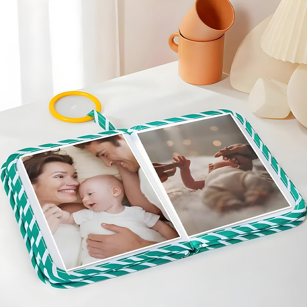 Preserve the most precious moments of your baby’s early days with this soft fabric photo album.