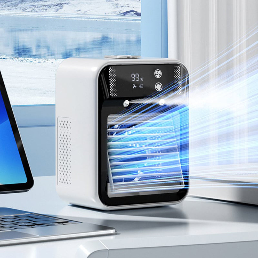 Large Capacity Water Storage Bank - Mini desktop cooling fan is equipped with 500ML large capacity sealed water storage tank, large diameter water injection hole, you can add the right amount of ice cubes, easy to inject fresh water, has a good prevention of water leakage.