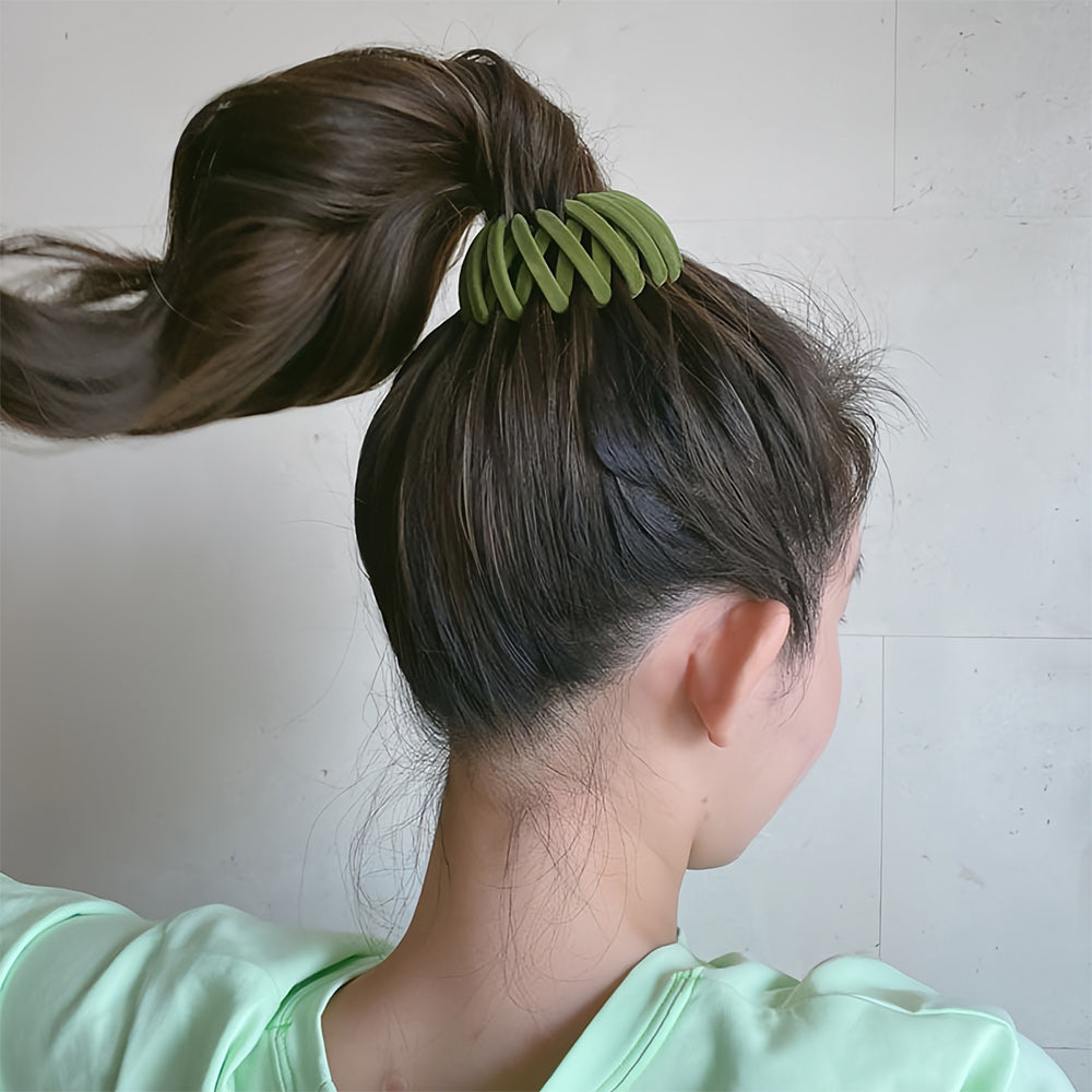 Lazy Bird's Nest Plate Hairpin is a bendable hair tool that holds hair up stylishly all day long. Just clamp your hair with the bun maker, roll up and bend it into a perfect bun in seconds!