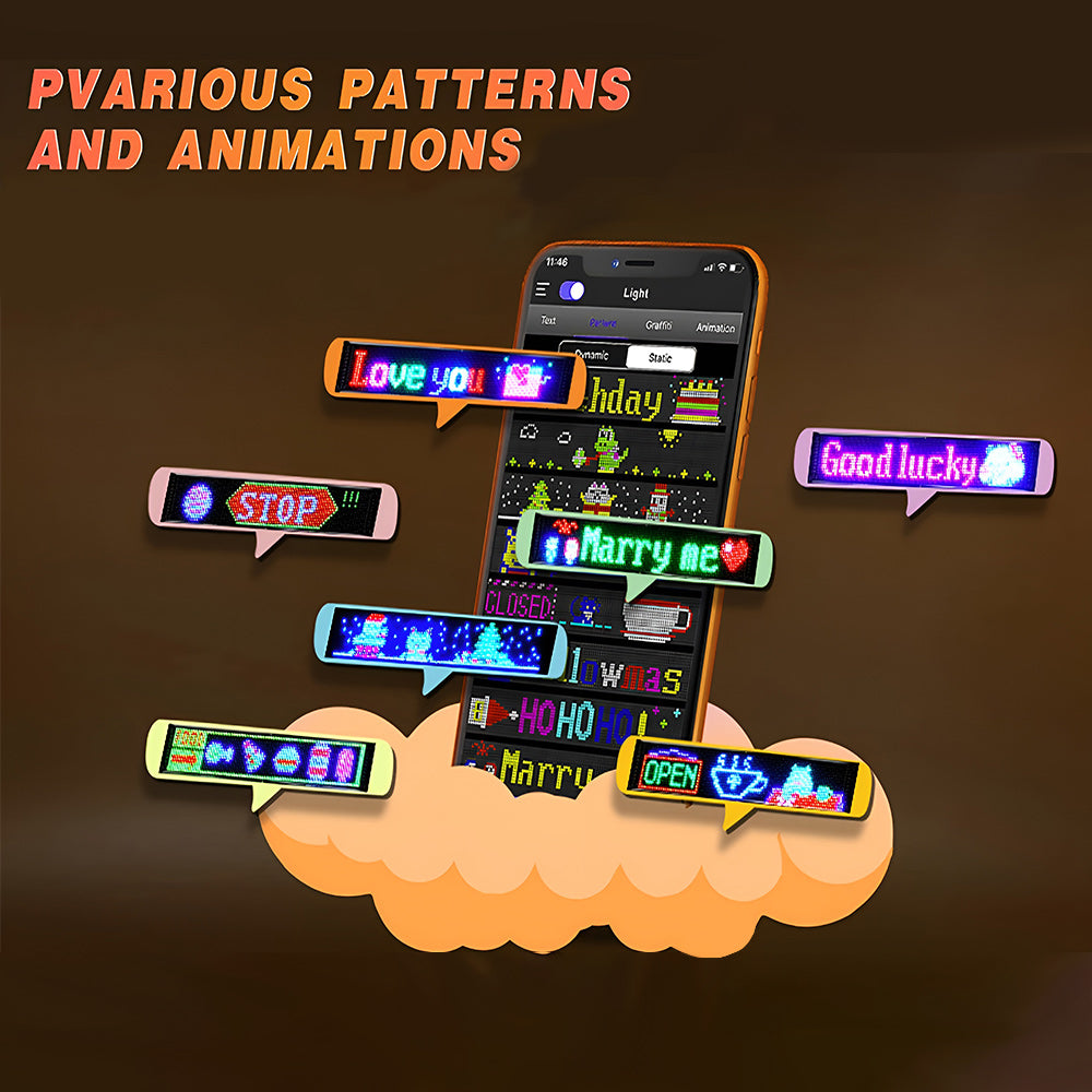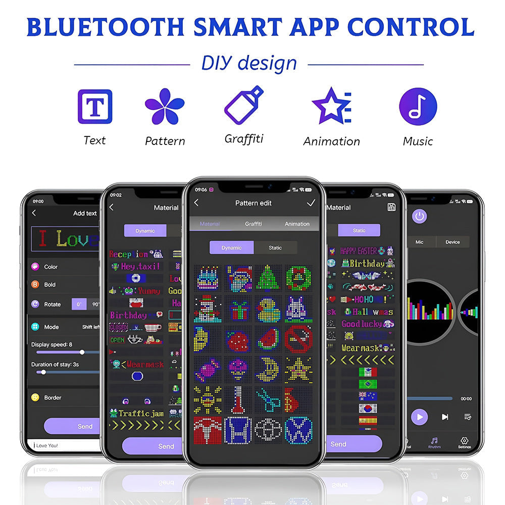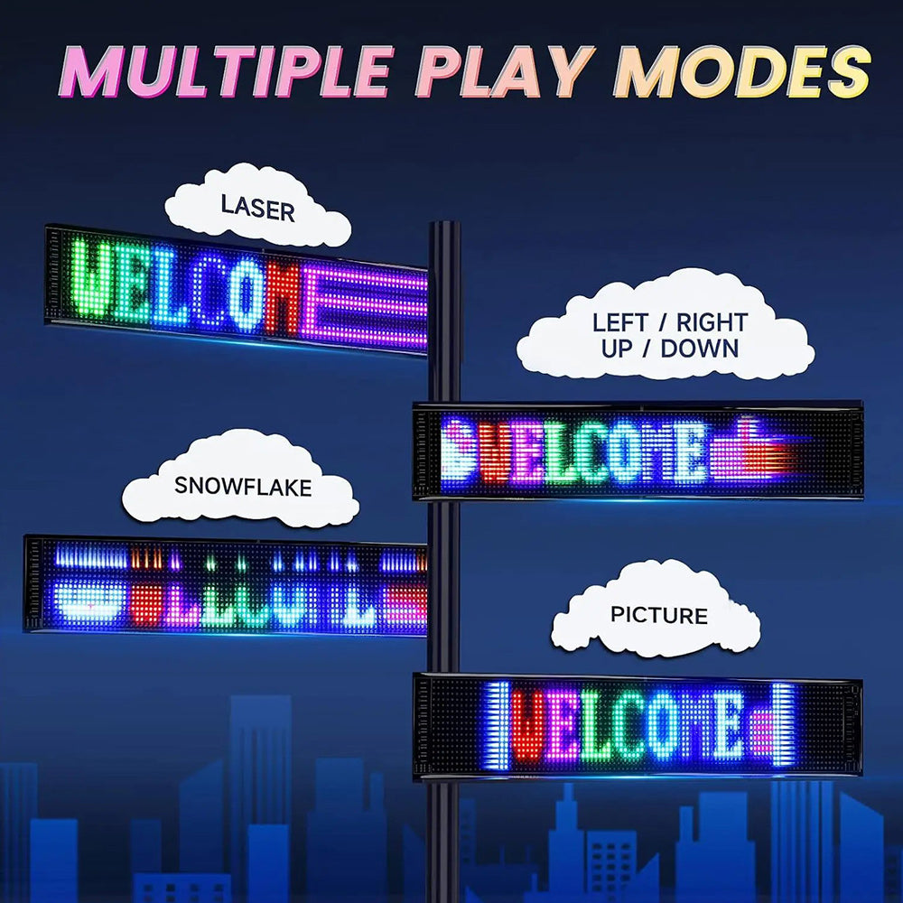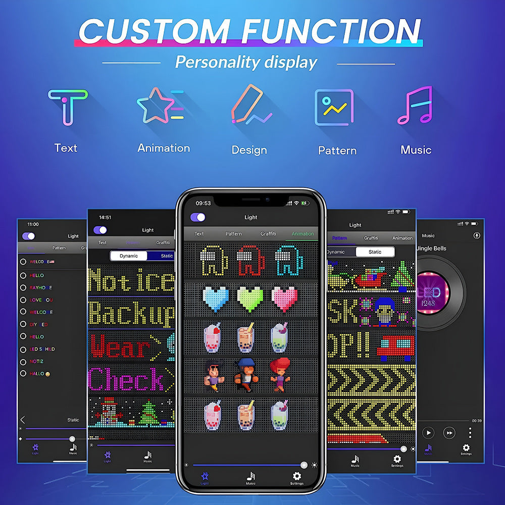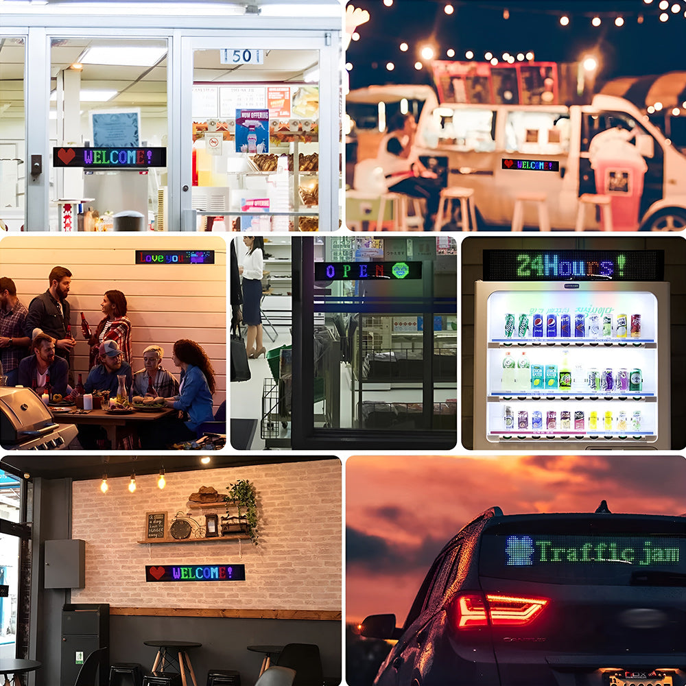 LED sign is controlled by a Bluetooth-connected app, which supports connecting multiple LED displays at the same time, making your store more eye-catching, the app has built-in many interesting modes and animations. Your phone makes it easier to customize fun patterns and text to personalize your store.