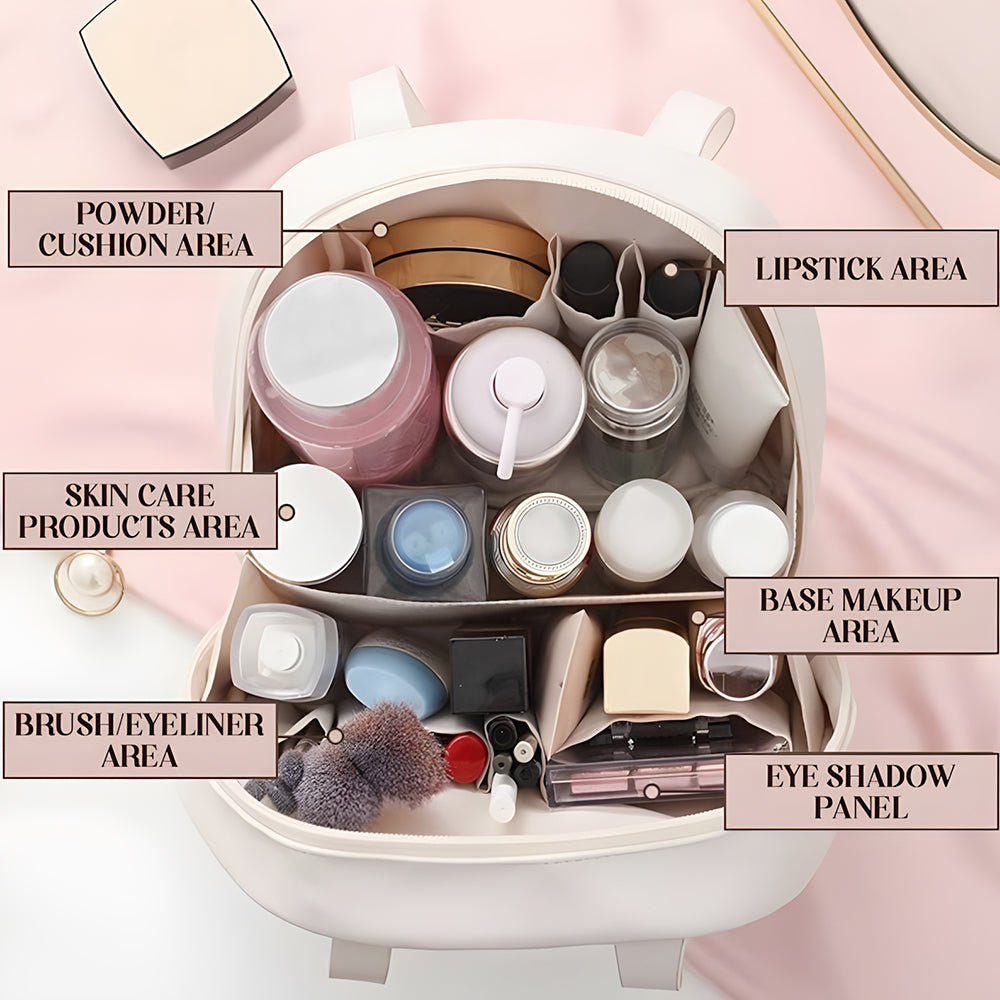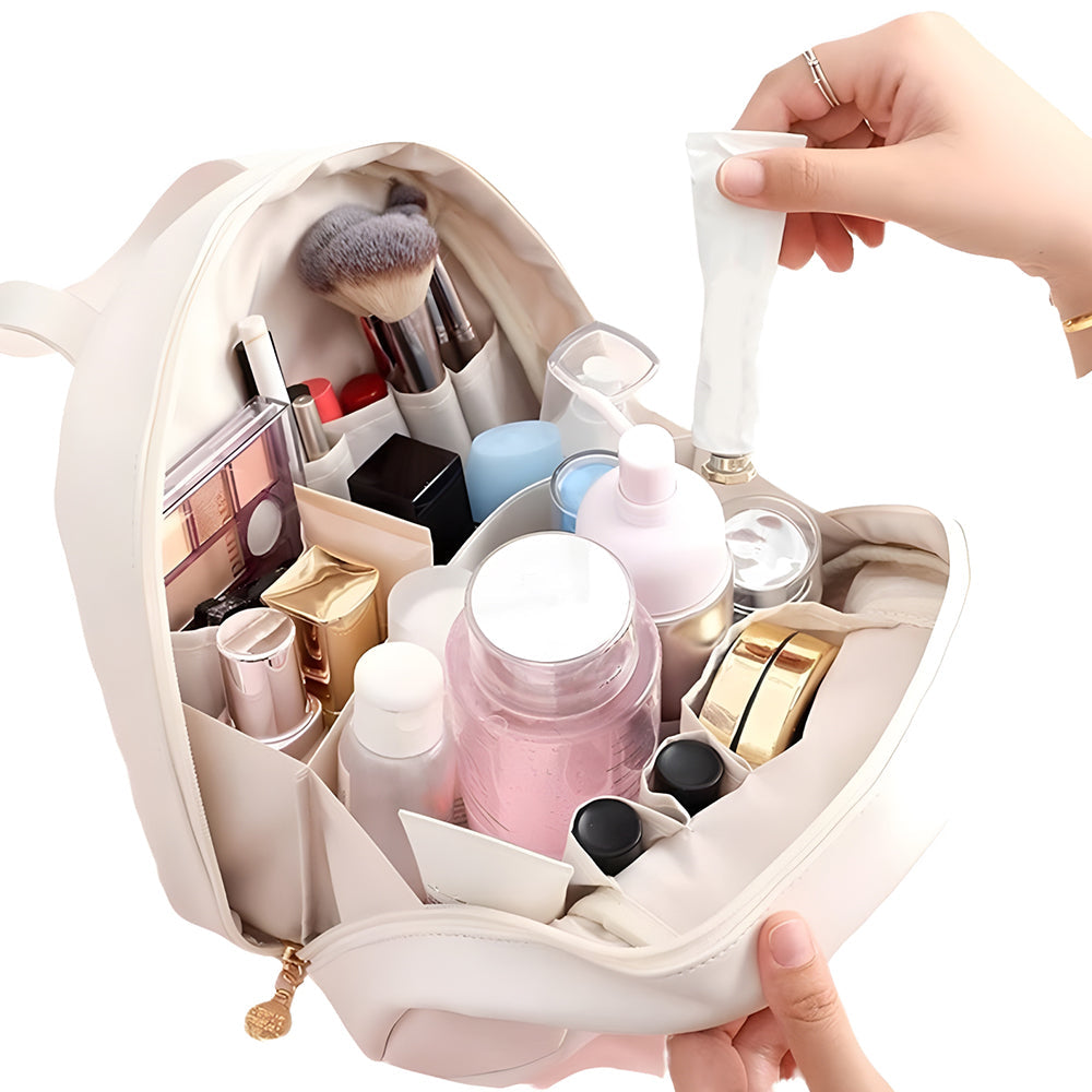 • 【Compartmental design】The large capacity makeup bag allows you to put all the cosmetics you want in this makeup bag when you are on the go, and we have improved its compartmental design. Even if you have a lot of stuff, it prevents your stuff from getting messy because of the compartmentalized design, can be sorted and placed in a way that looks organized and allows you to quickly find the items you want in your makeup travel bag.