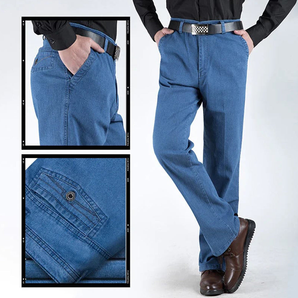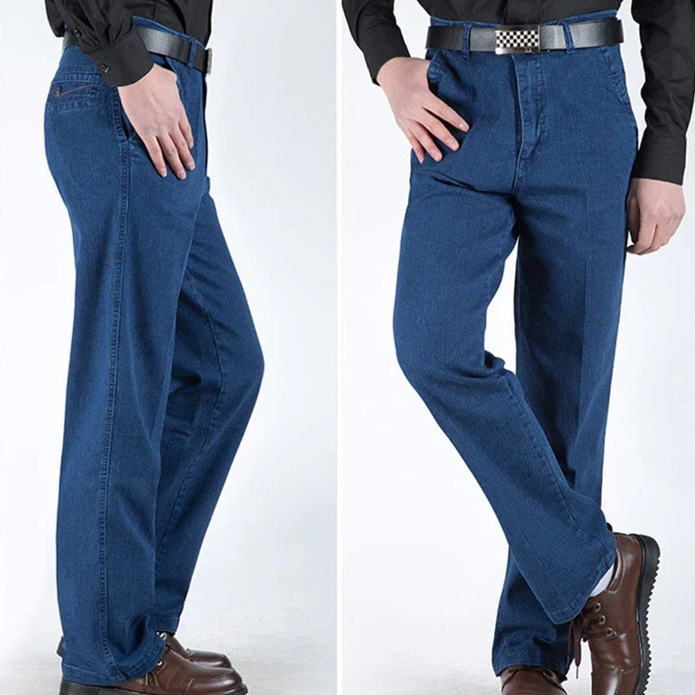 - STRAIGHT FIT - Men's High Waist Straight Cut Jeans are the perfect option for those who want a jeans that fits perfectly and is designed to last. With a straight leg for a relaxed fit and slim fit, these jeans will keep you looking your best in any situation.