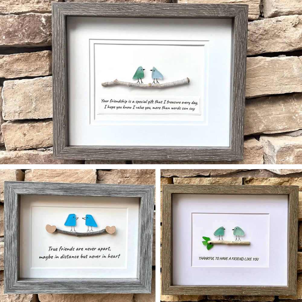 - Seaglass birds best friend gift in a white box frame❤️"Thankful to Have a Friend Like You".❤️