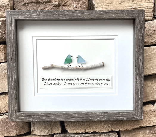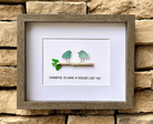 ❤️Handmade sea glass artwork featuring two birds on a branch. Perfect gift for a close friend. The quote on the picture states