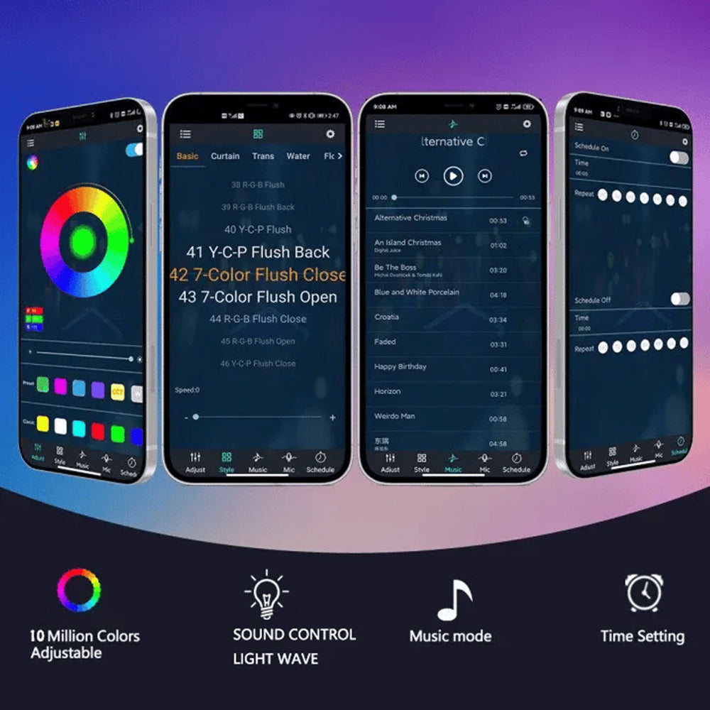 Remote controlled & in-app equipped! (both for IOS & Android) - You can change the color of your lights with just a few taps on your smartphone. Whether you're looking to create a festive atmosphere for a party or want to add some extra ambiance to your living room.
