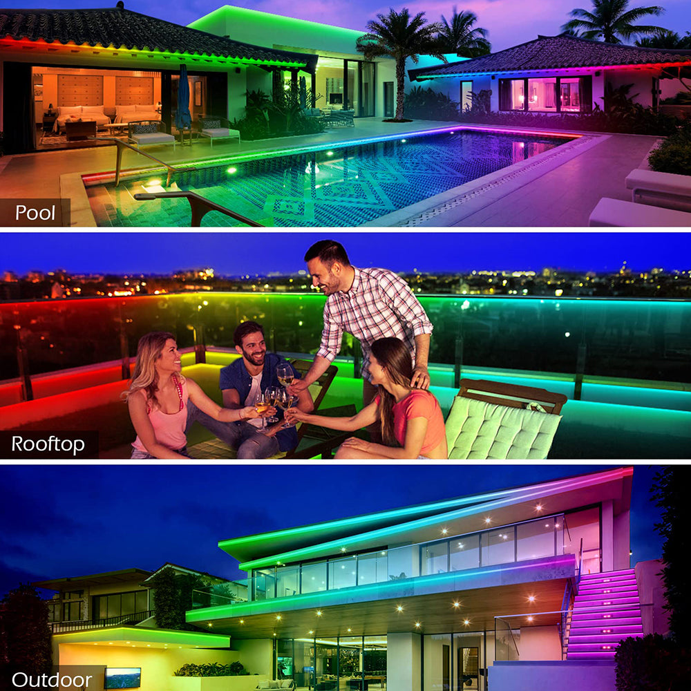 Our outdoor lights contain independent control chip which allow individual segments to display multiple colors at the same time. Outdoor strip light brings you an excellent color experience.