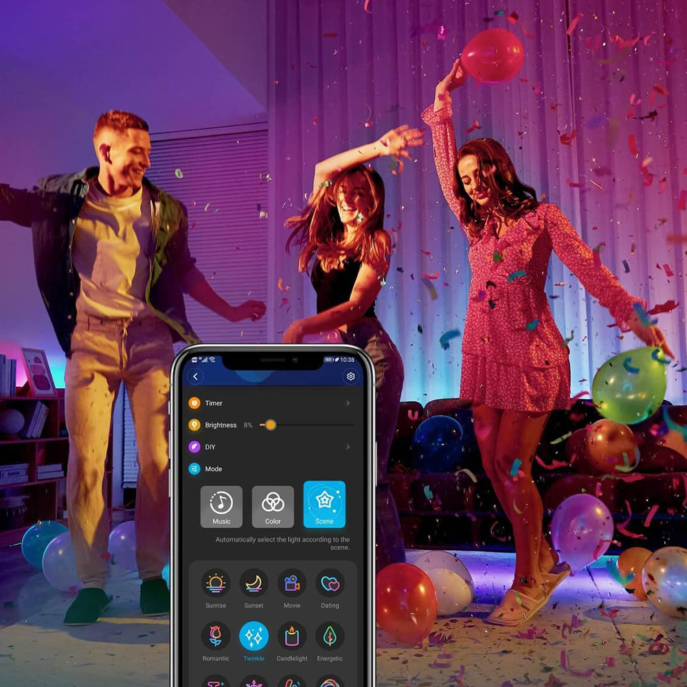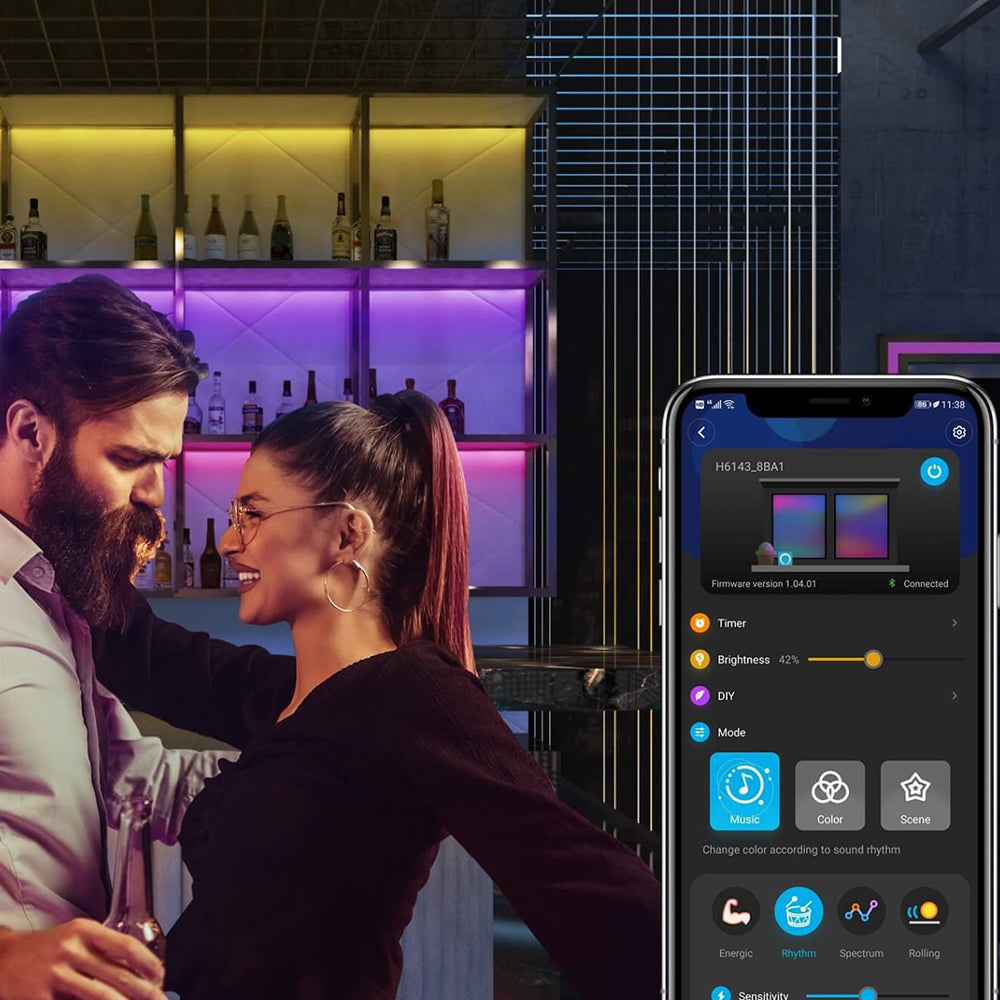 The App allows to fully personalize your strip lights. Choose from 16+ million color options sync the lights with your favorite audio with music mode.