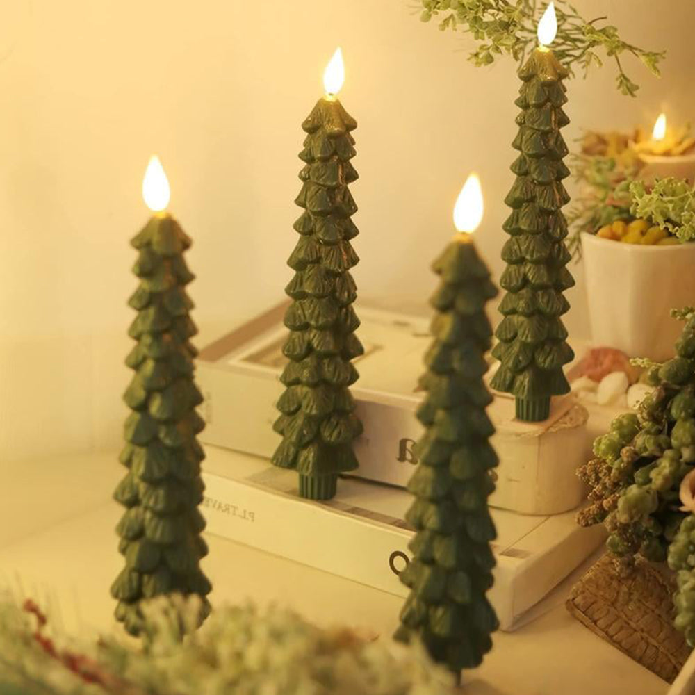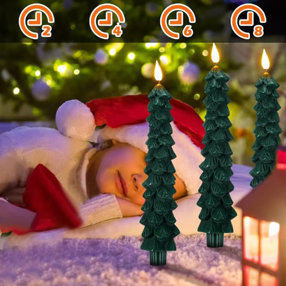 Our designers creatively designed flameless candles with the appearance of Christmas tree shape by real wax. Compared to traditional Christmas tree candles, the same role but brings different experience. NO SMOKE, NO FIRE-HAZARD, NO DRIPPING WAX. The design of 3D bulb flame with flickering warm yellow light makes the candle more realistic. The authentic appearance makes it a perfect choice for Christmas.