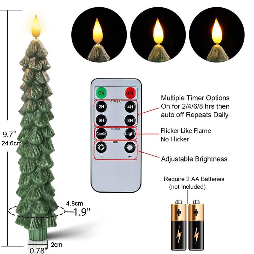 Realistic unique battery powered Christmas tree candlesticks and design of flickering 3D bulb flame make them suitable for Christmas decoration like windowsills, fireplaces and dining tables. Whether it is a family gathering or enjoying the tranquility alone, the LED taper candles can instantly enhance the sense of ritual of the festival. They would be special presents for Christmas, birthday, and party hostess gifts.