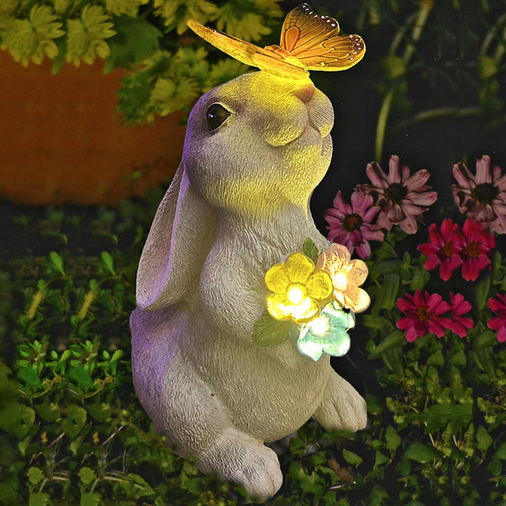 - Outdoor Decorations: Just turn on the switch of the solar garden decor and leave it on. Then place the rabbit decor anywhere in direct sunlight. The outdoor statues will be fully charged within 6-8 hours during the day and automatically light up for 8-10 hours at night. A perfect choice for yard art and garden accessories.