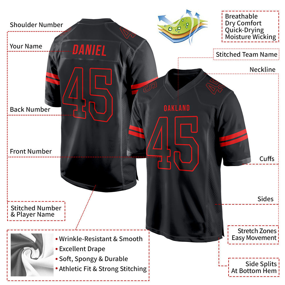 CUSTOM BLACK BLACK-RED AUTHENTIC FOOTBALL JERSEY