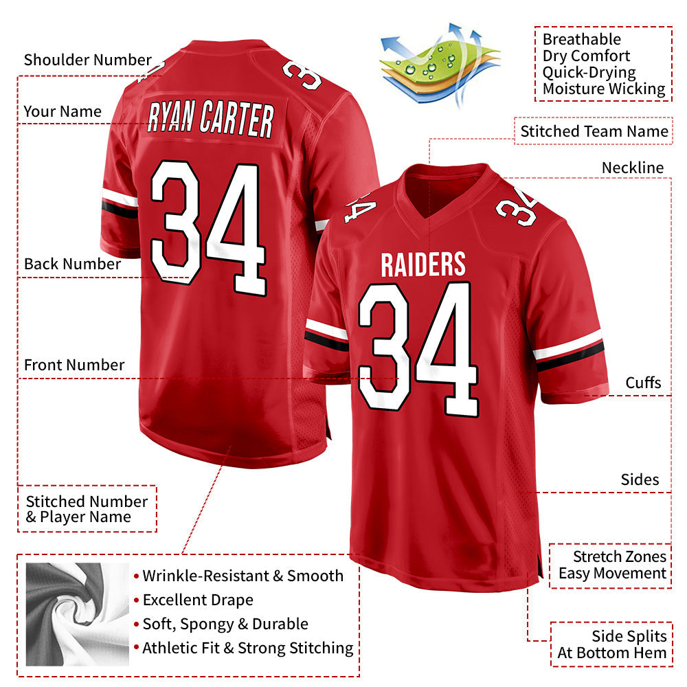 CUSTOM RED WHITE-BLACK MESH AUTHENTIC FOOTBALL JERSEY