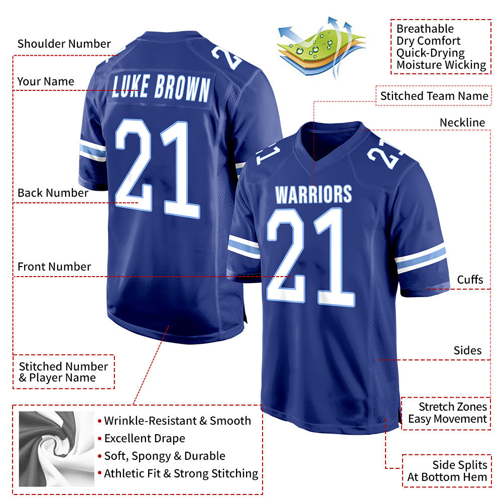 CUSTOM ROYAL WHITE-SKY BLUE MESH AUTHENTIC FOOTBALL JERSEY