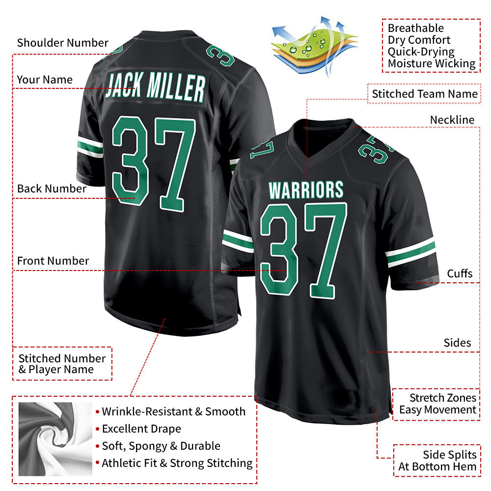 CUSTOM BLACK GREEN-WHITE MESH AUTHENTIC FOOTBALL JERSEY