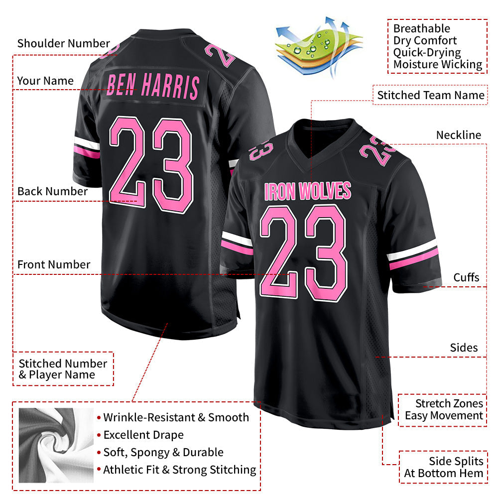 CUSTOM BLACK PINK-WHITE MESH AUTHENTIC FOOTBALL JERSEY