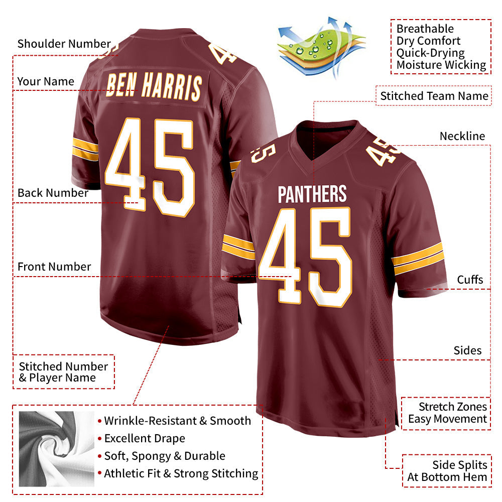 CUSTOM BURGUNDY WHITE-GOLD MESH AUTHENTIC FOOTBALL JERSEY