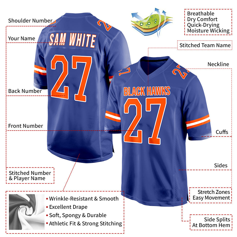 CUSTOM ROYAL ORANGE-WHITE MESH AUTHENTIC FOOTBALL JERSEY
