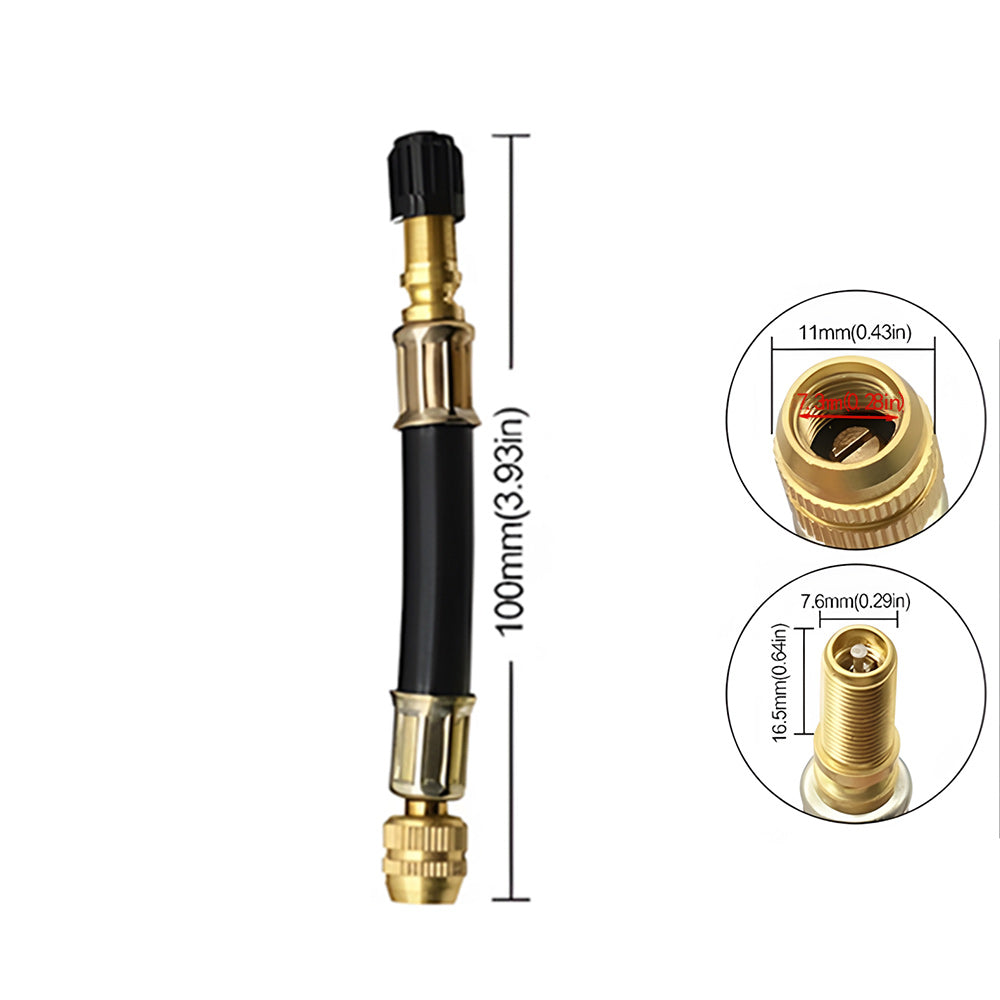 - High Quality: The valve stem extender is made of rubber and corrosion-resistant brass, which is sturdy and durable and comes with a dust cover. With the extender, you can work more efficiently, check the pressure and inflate.
