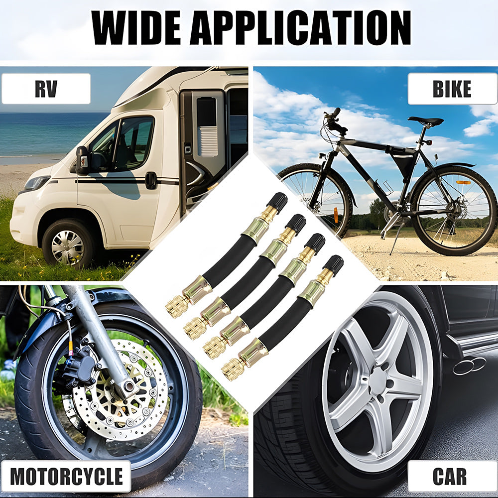 - Universality: Universal Flexible Tire Valve Extender for Cars, Motorcycles, RVs, Trucks, Bicycles, Scooters