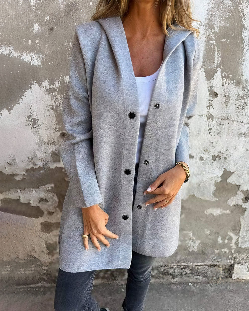 Elevate your casual wardrobe with our Single Breasted Hooded Jacket.