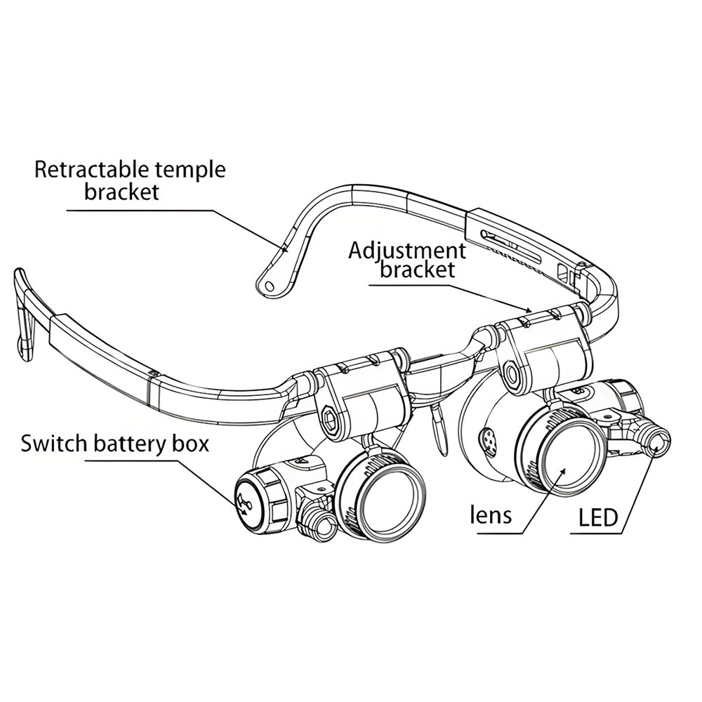 Handsfree eyeglasses, when you don't need it, just turn up the lens barrels, no need taking off the glasses. Lightweight ergonomic frame with soft padding suitable for all head sizes.