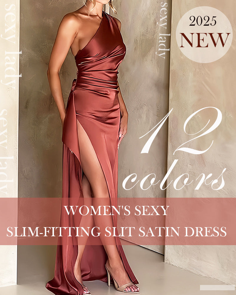 🔥Satin Formal Dresses for Women 2025 One Shoulder Wedding Guest Dress with Split!