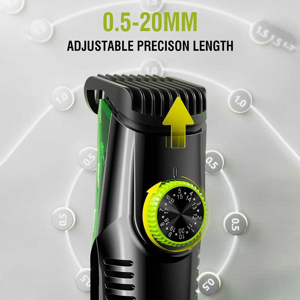 - Endless possibilities for beards: Design more styles with our electric beard trimmer for men, complete with two hair combs. Achieve 20 different trimming lengths effortlessly through knob calibration, allowing you to customize your look for your beard, chin, sideburns, etc.Remove off the hair comb will allow for a more thorough trim