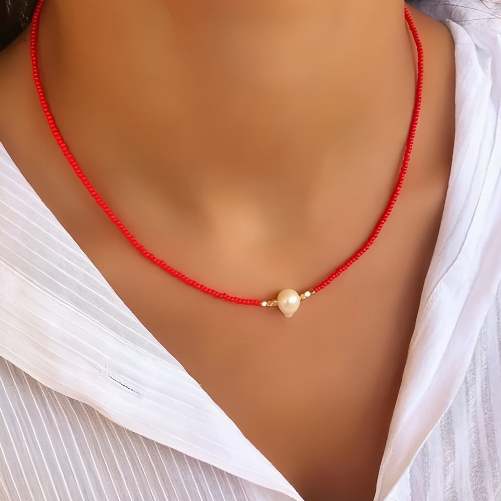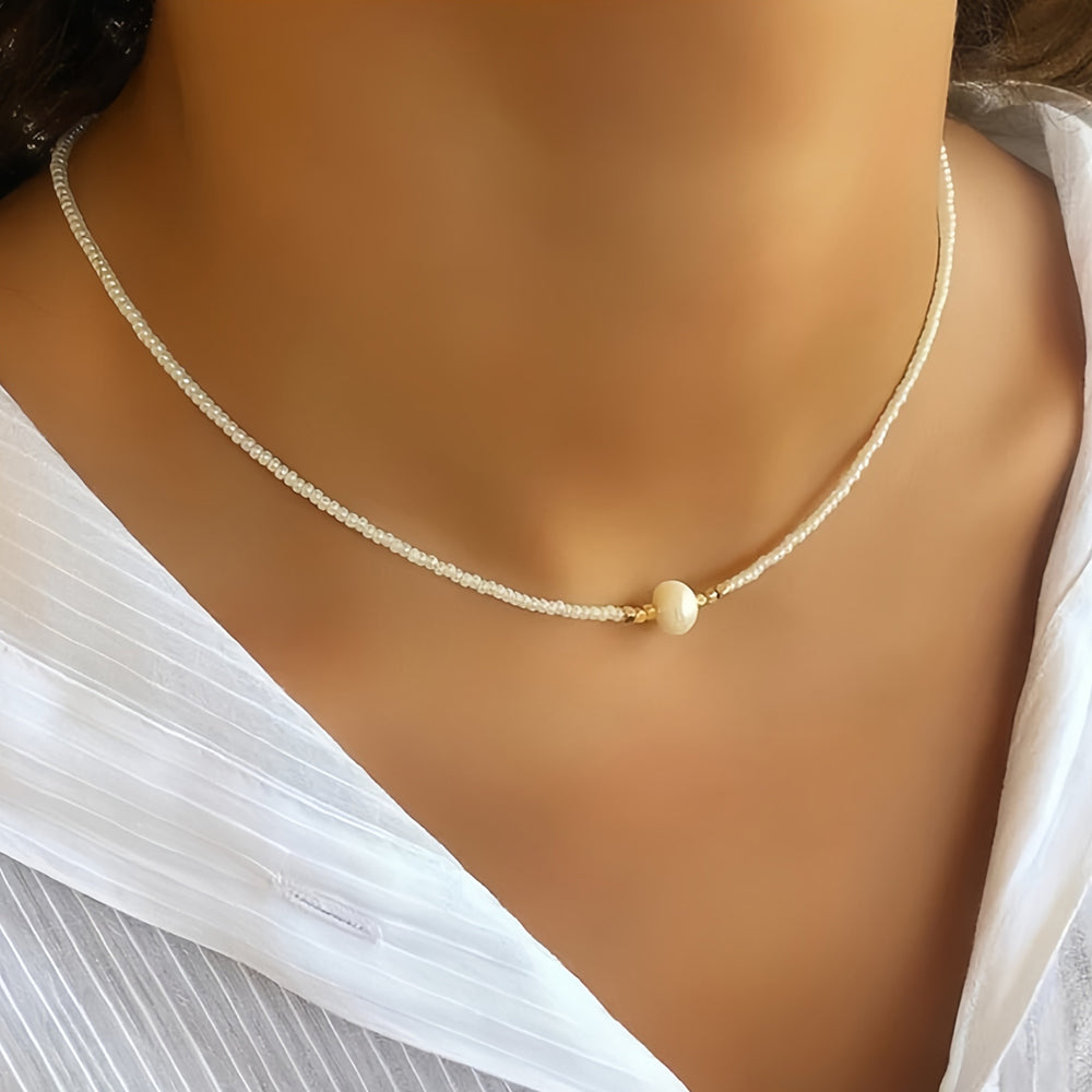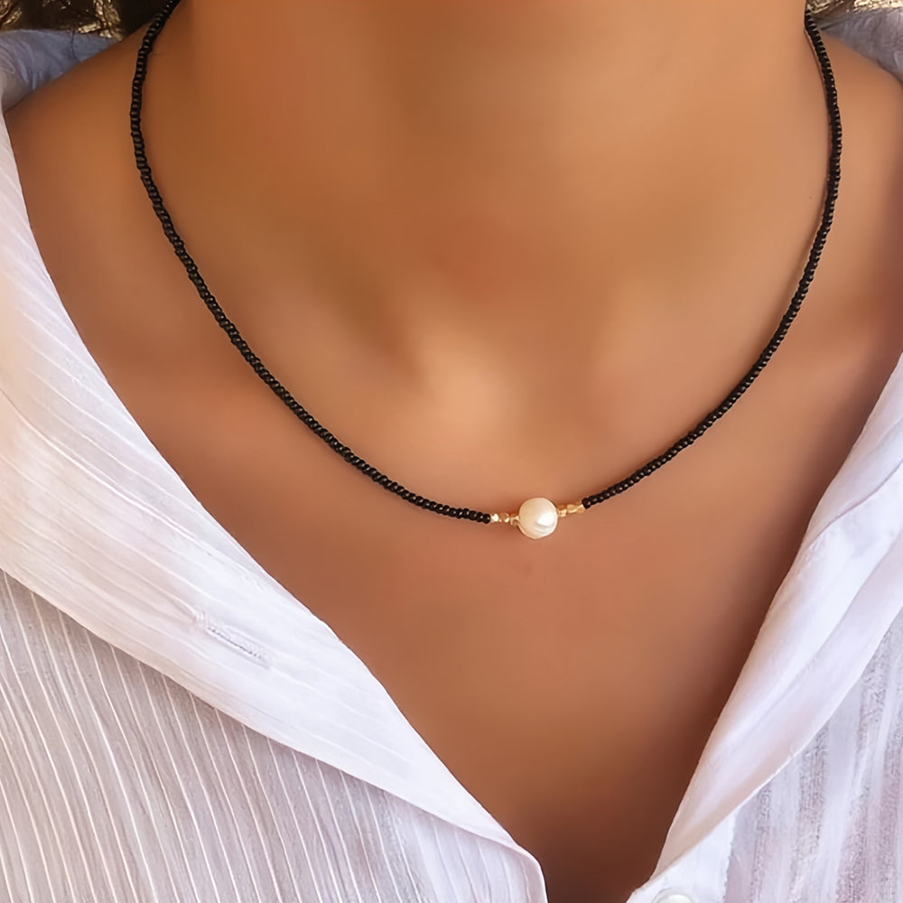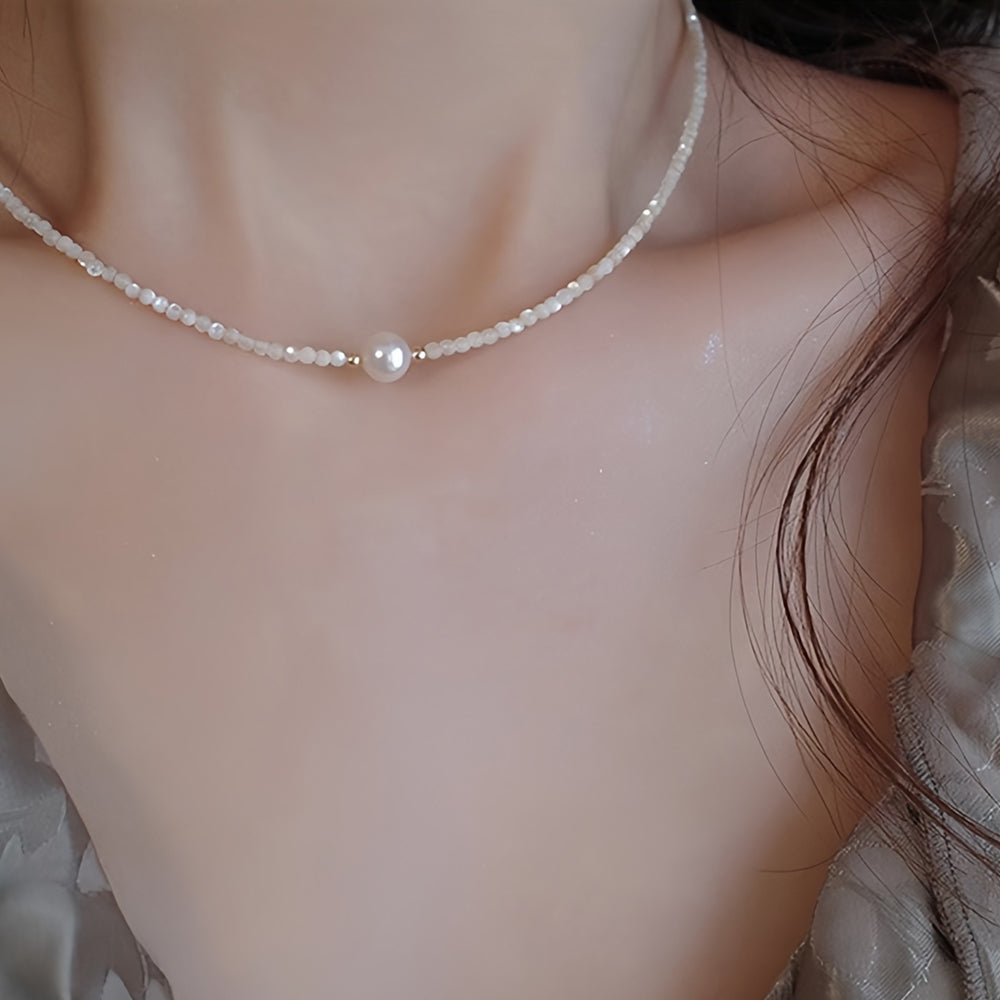 - Plain Color Combination with Eye Catching Looks -- The fresh water pearl necklace fits amazingly perfect and goes with anything. This minimal necklace fits the neck & looks amazing.