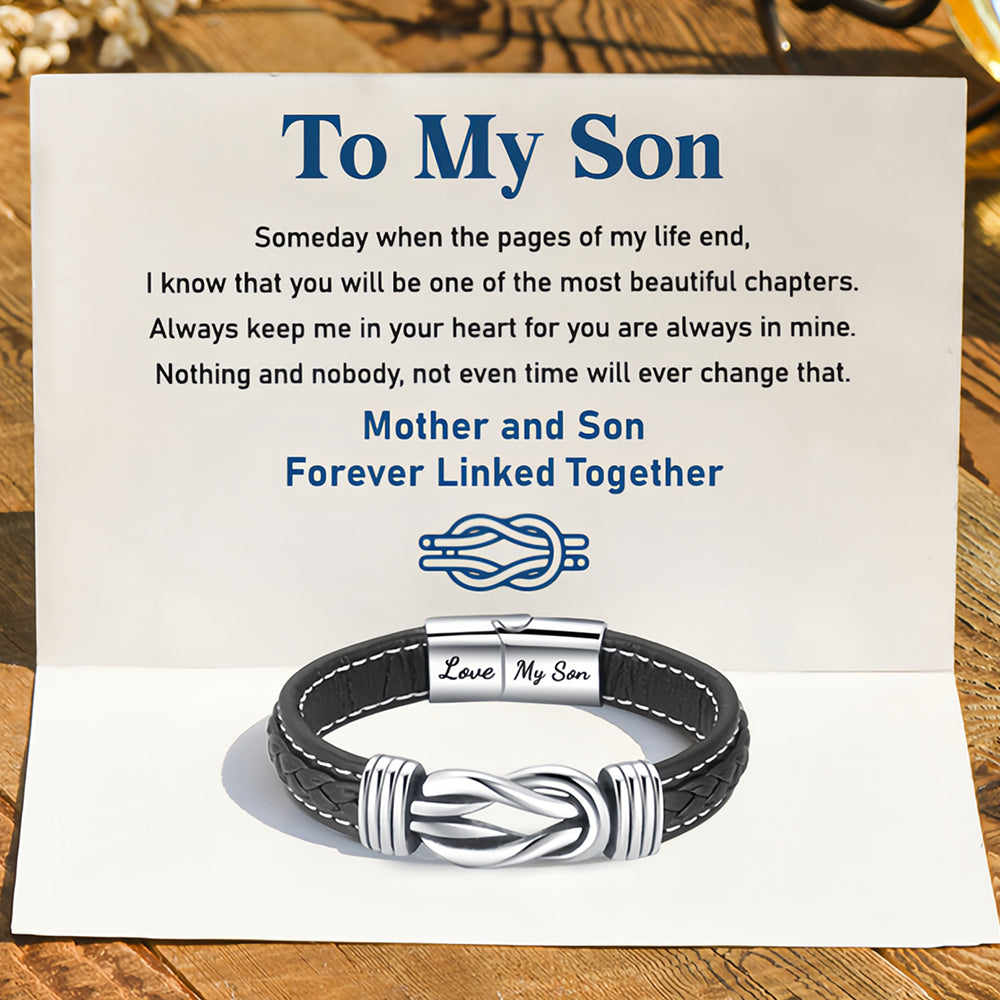 - YOU WILL GET A SURPRISE -- Surprise your son with this Braided leather bracelet. The To My Son bracelet comes with a gift box and a lovely message card. Mother and son forever linked together, never forget how much I love you.
