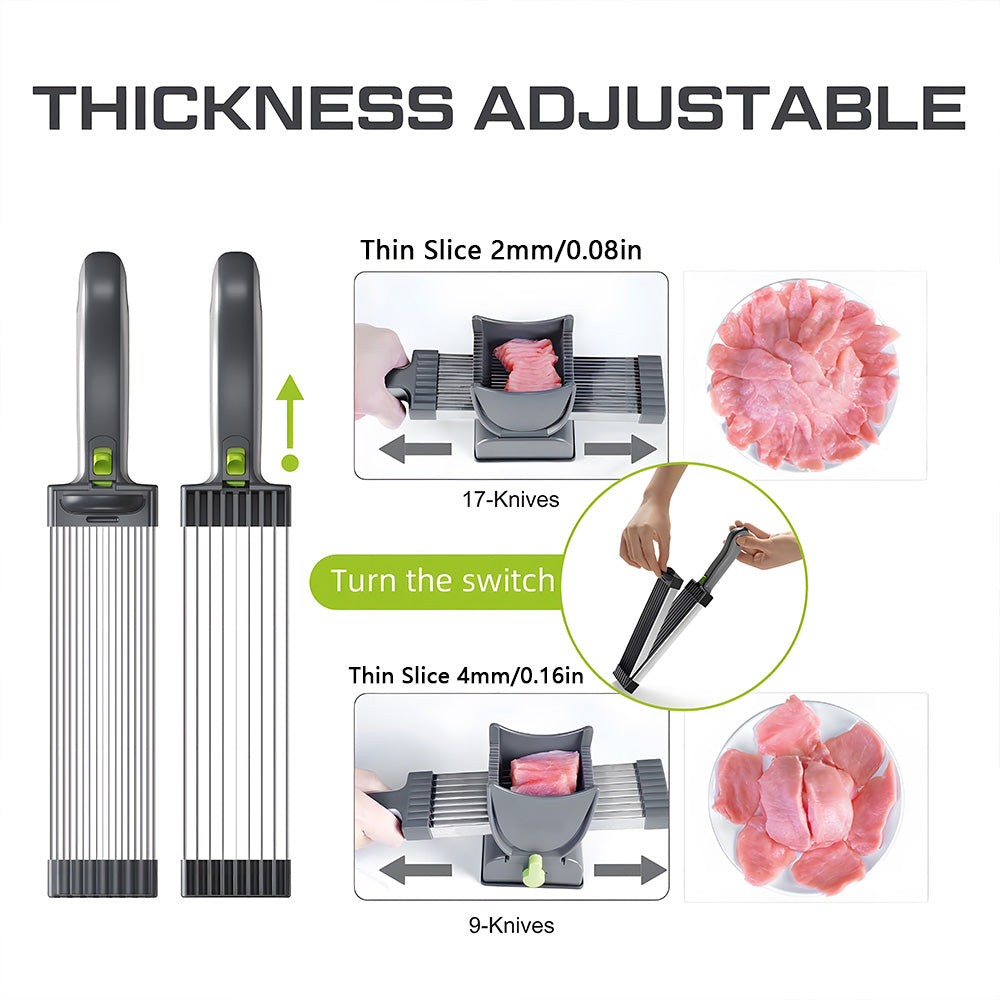 Meat Slicer For Fresh Raw Meat, Adjustable Thickness 2 Or 4 Mm, 17-In-1 Stainless Steel Meat Cleaver Kitchen Knife