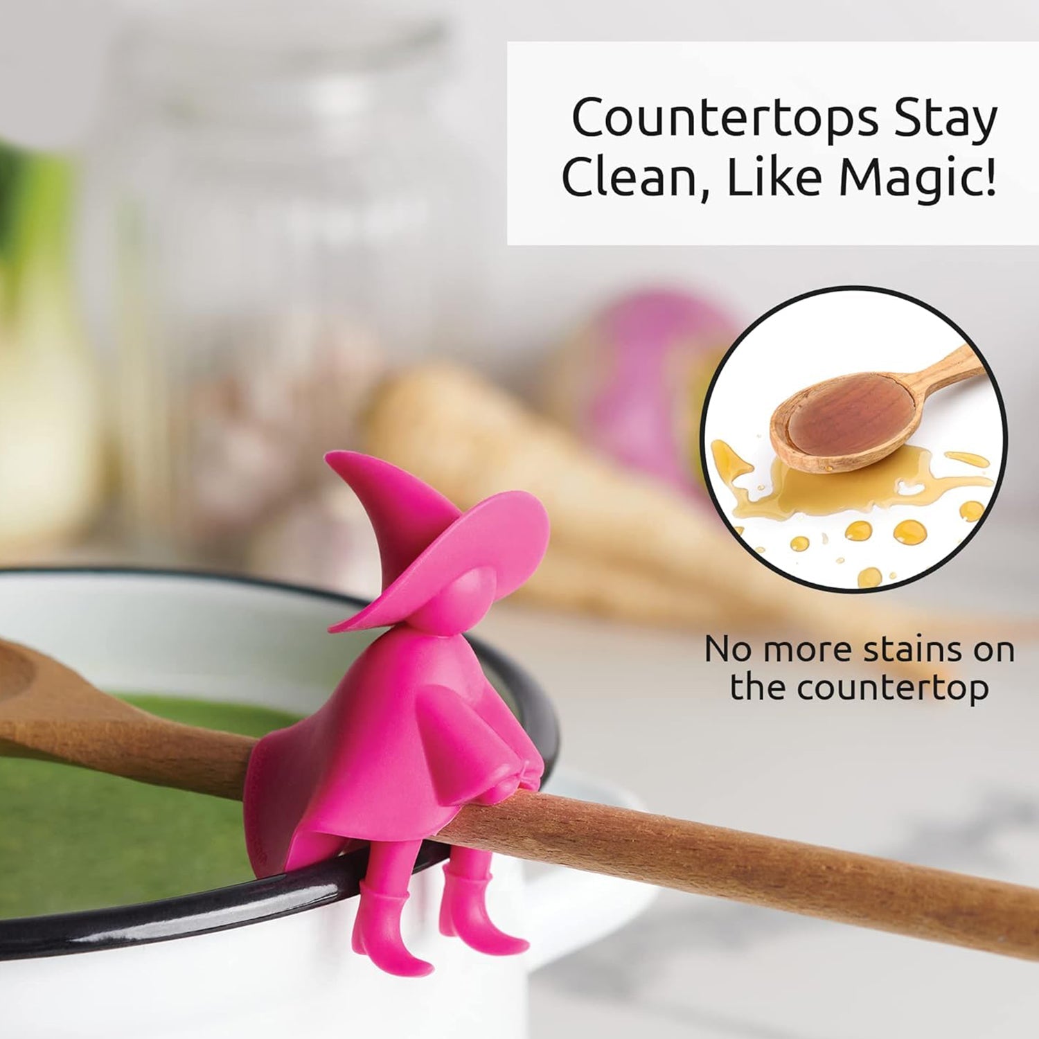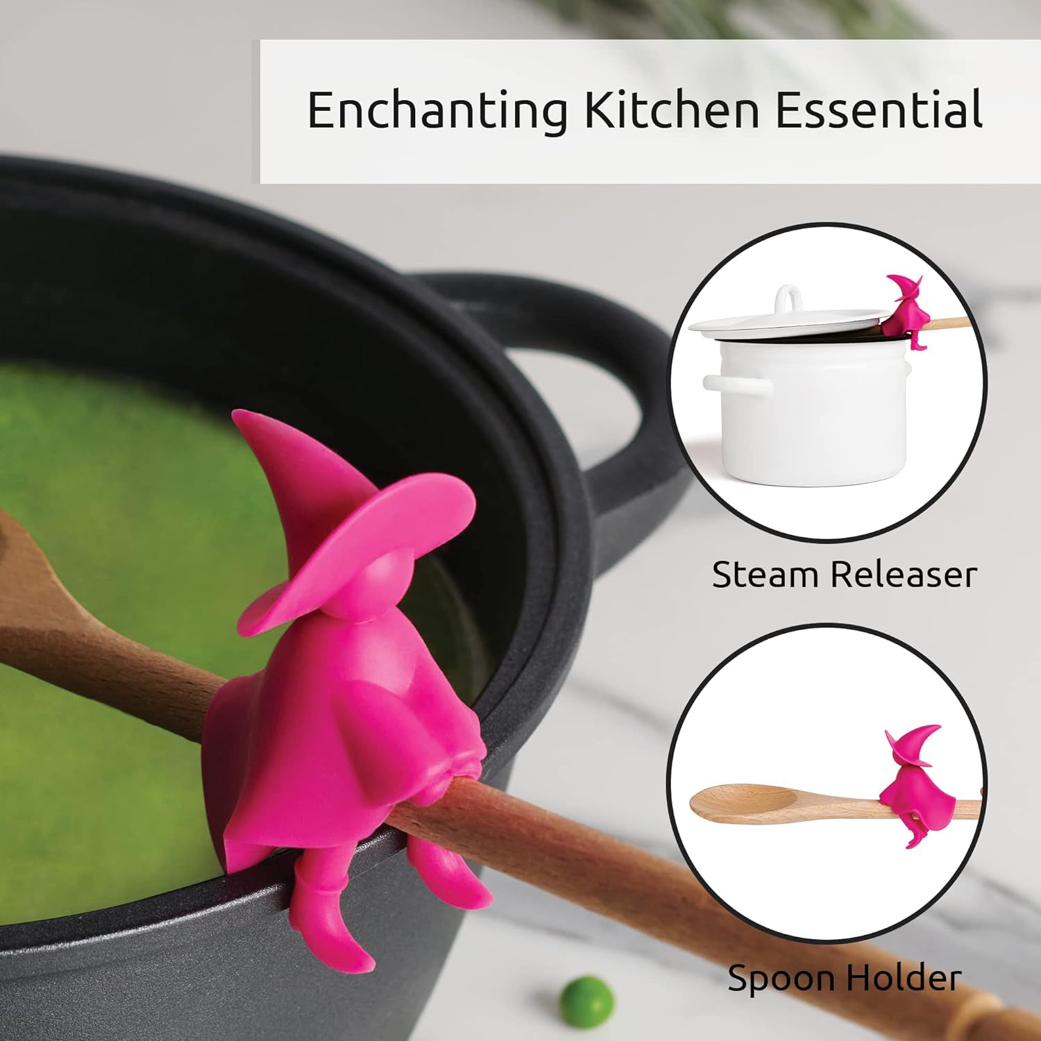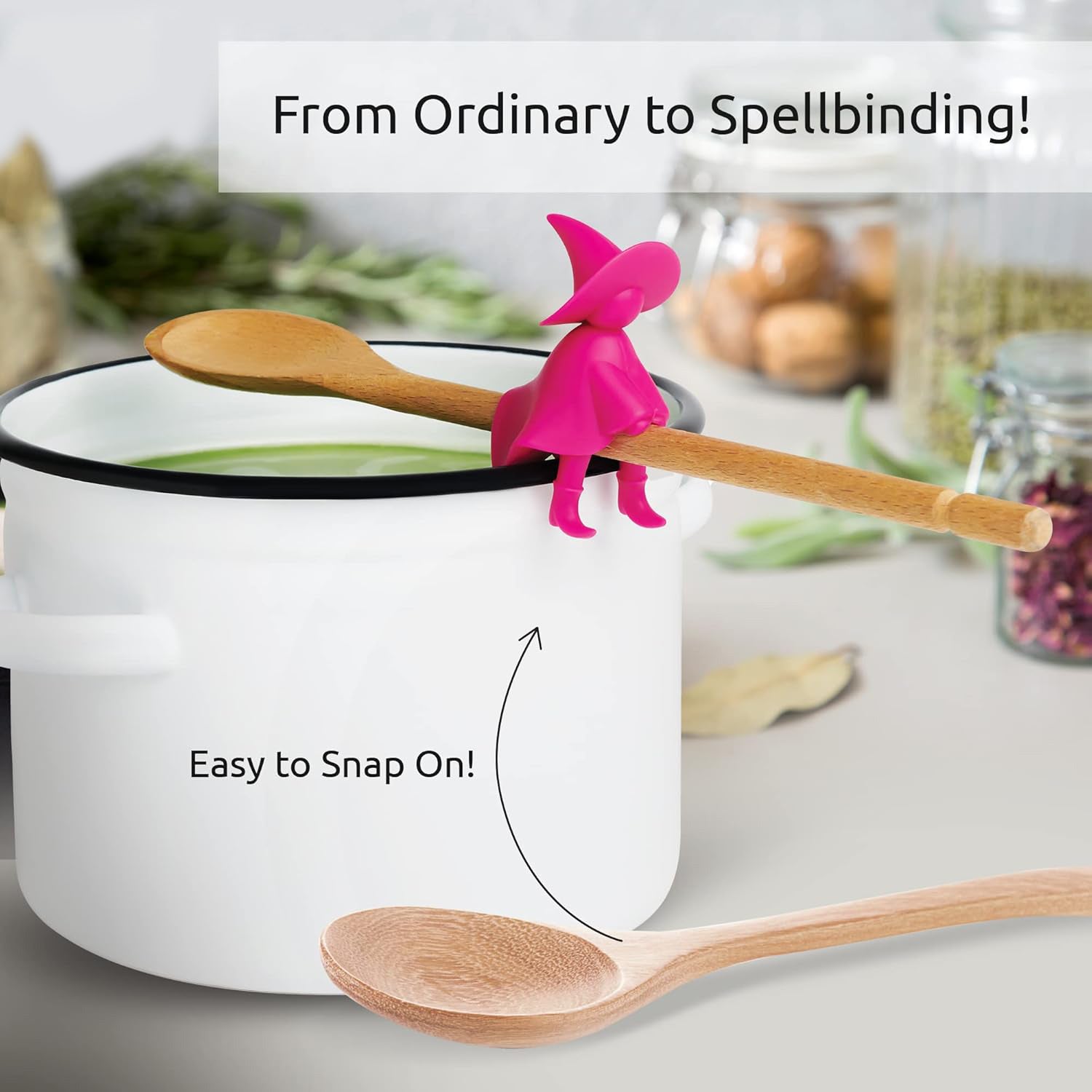 - Bewitching Kitchen Spoon Rest: Made of food grade silicone and BPA free, this heat resistant spoon rest will be useful for more convenient serving and meal preparation.