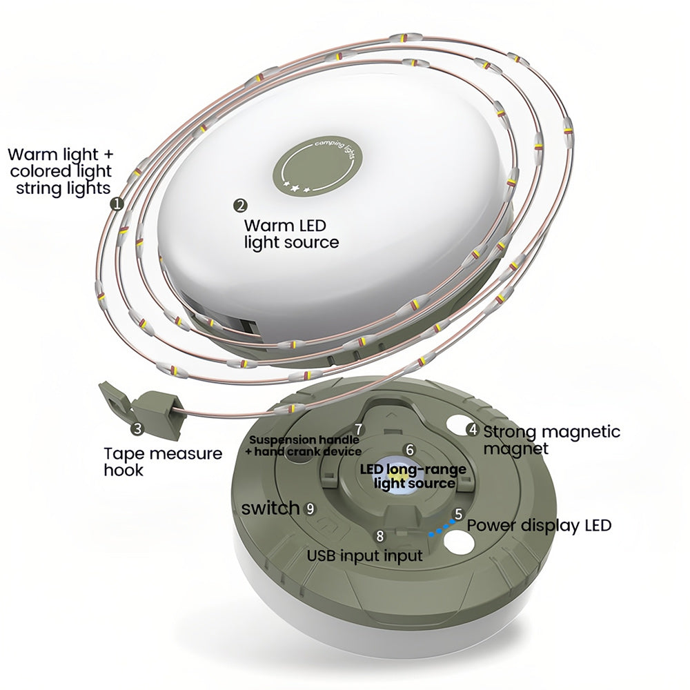• ◪Magnetic Versatility: Securely attach these camping tent string lights to any iron object and enjoy quick and easy illumination. With a firm grip and a powerful magnet on the back, it provides hands-free lighting that's perfect for any outdoor adventure.