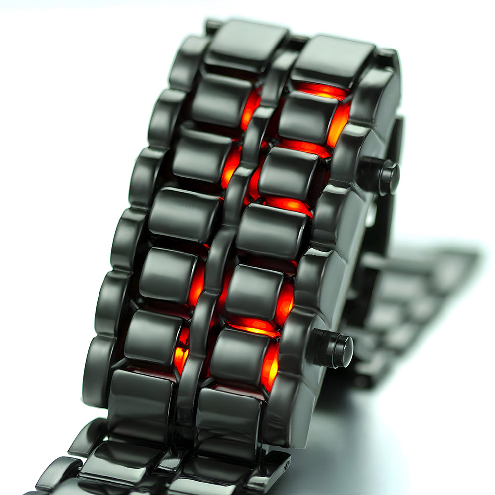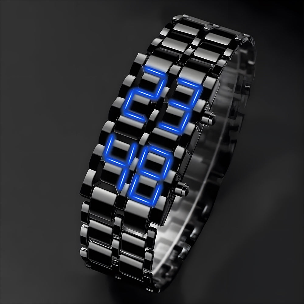 - PRECISE: Electronic movement provides accurate and constant time keeping. LED digital time display. Clear and easy read. Top row LED lights for hour or month, and bottom for minute or day illuminating display.
