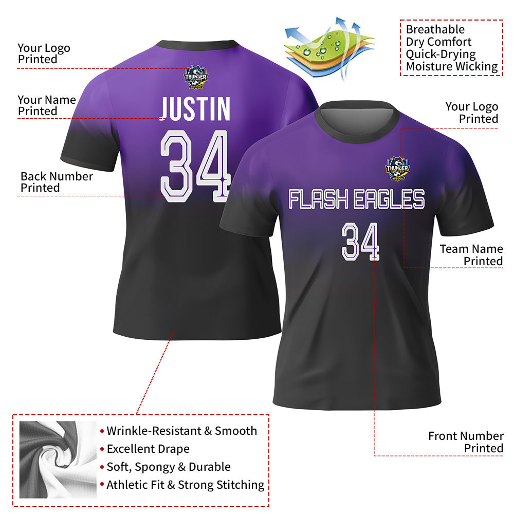 CUSTOM PURPLE WHITE-BLACK SUBLIMATION FADE FASHION SOCCER UNIFORM JERSEY