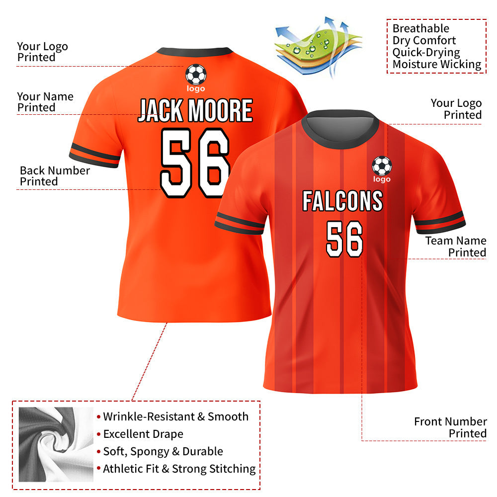CUSTOM ORANGE WHITE-BLACK SUBLIMATION SOCCER UNIFORM JERSEY