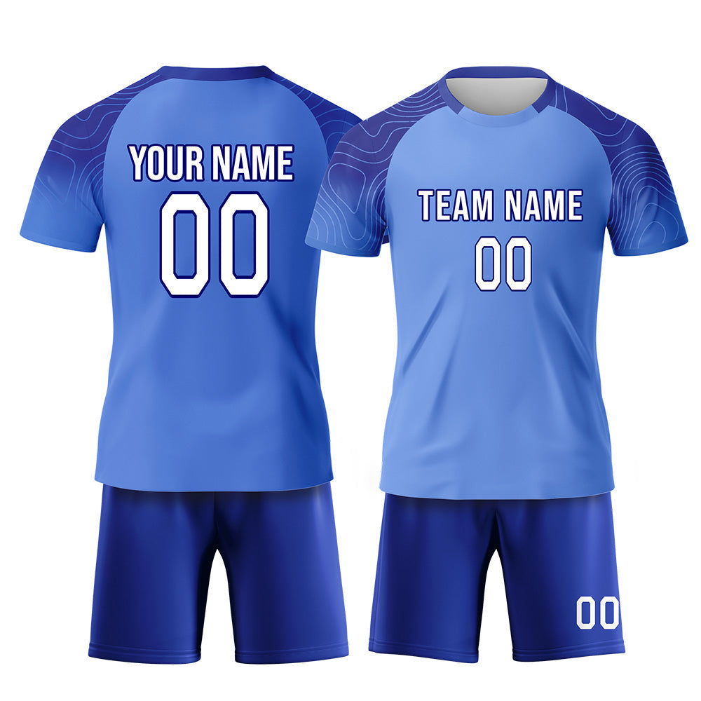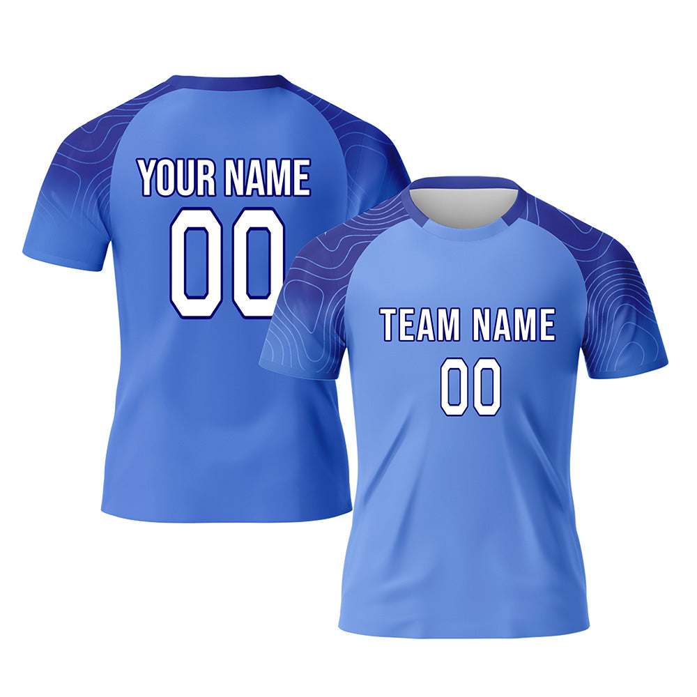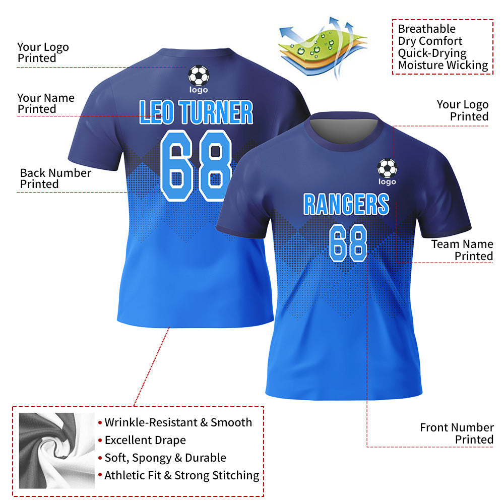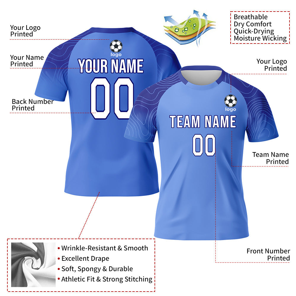 CUSTOM BLUE WHITE-LIGHT BLUE SUBLIMATION SOCCER UNIFORM JERSEY