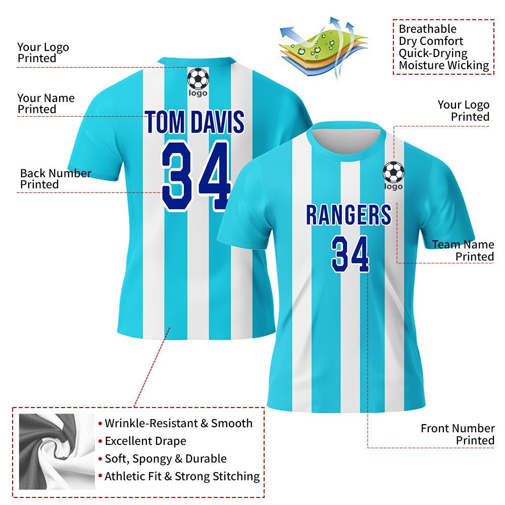 CUSTOM LIGHT BULE WHITE-ROYAL SUBLIMATION SOCCER UNIFORM JERSEY