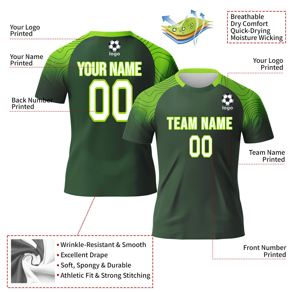 CUSTOM GREEN WHITE-NEON GREEN SUBLIMATION SOCCER UNIFORM JERSEY
