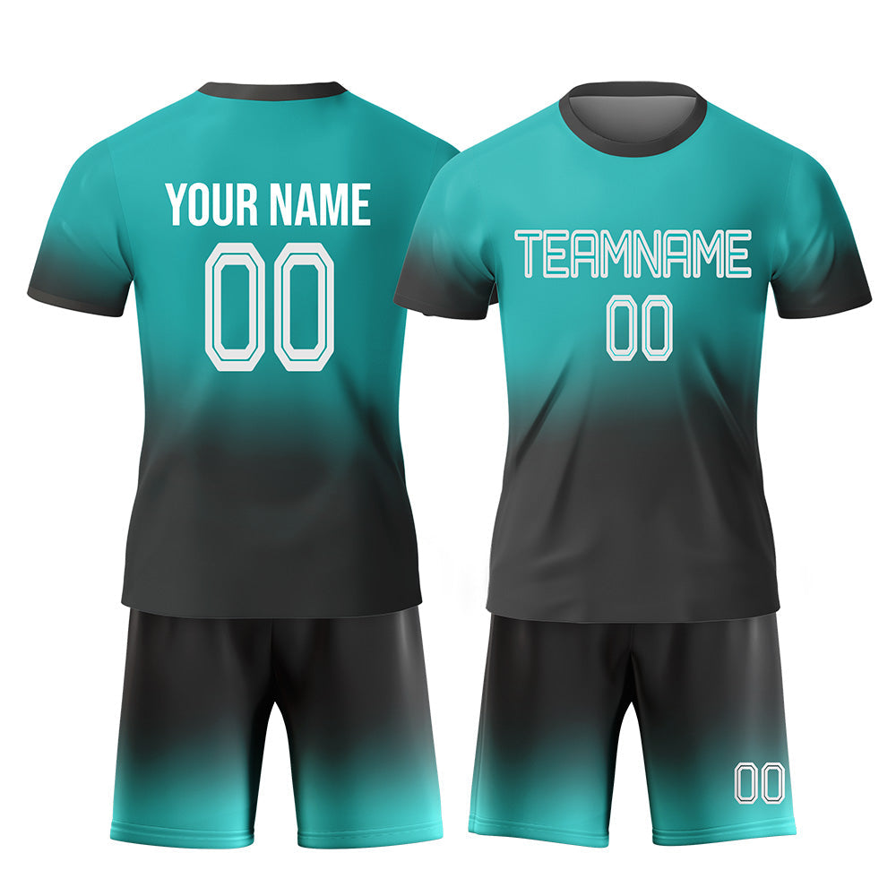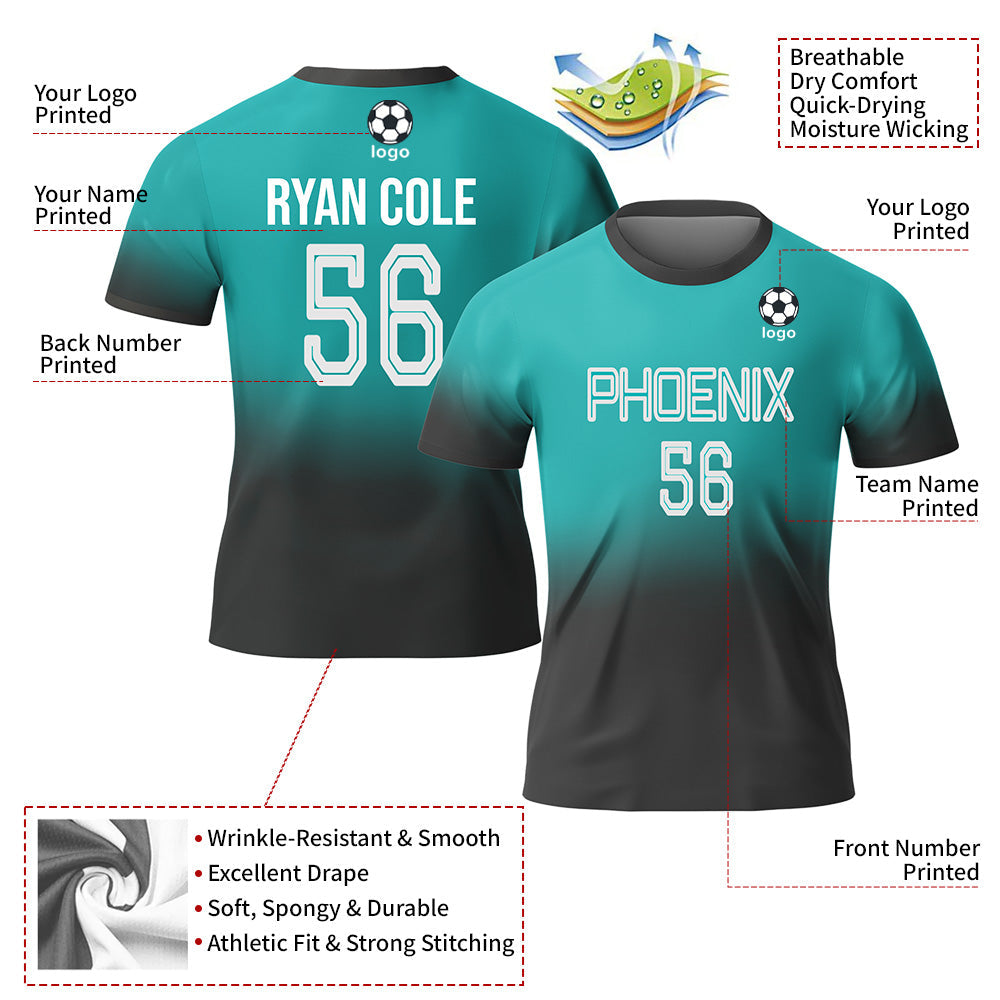 CUSTOM TEAL BLACK-WHITE SUBLIMATION SOCCER UNIFORM JERSEY