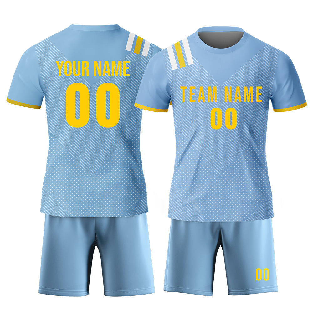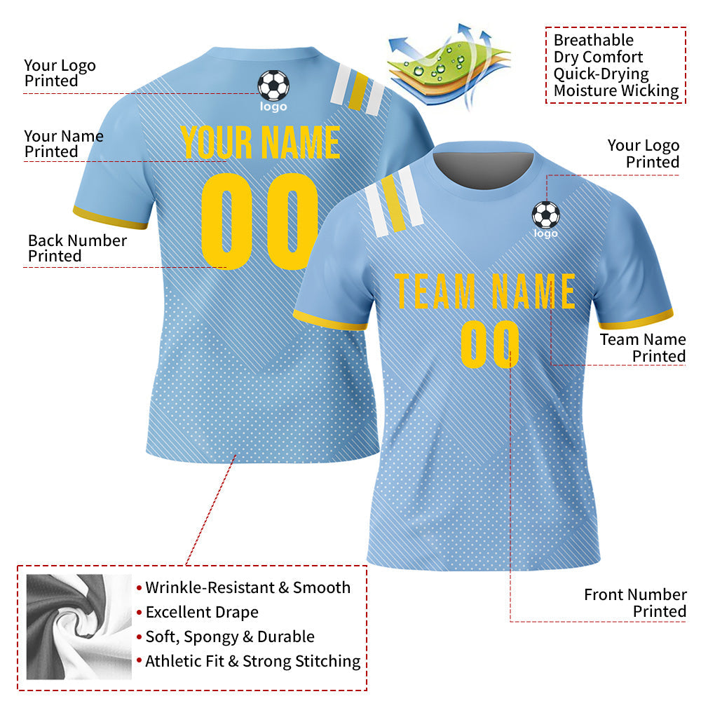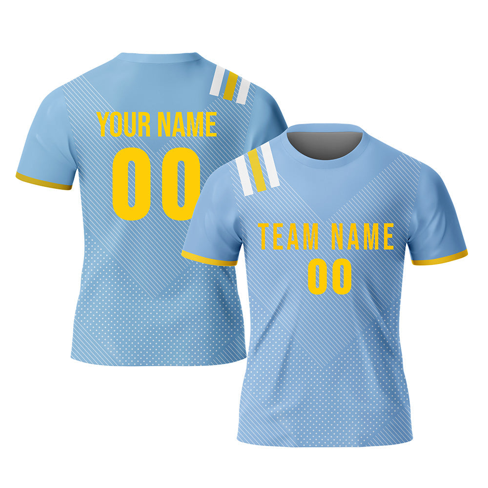 CUSTOM LIGHT BLUE GOLD-WHITE SUBLIMATION SOCCER UNIFORM JERSEY