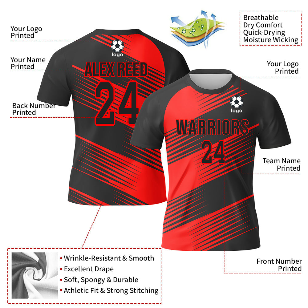 CUSTOM RED BLACK SUBLIMATION SOCCER UNIFORM JERSEY