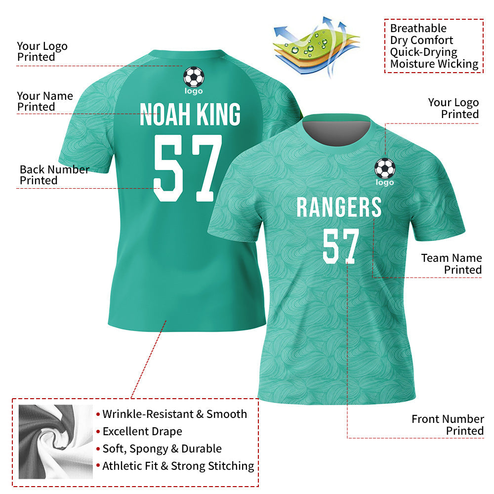 CUSTOM TEAL WHITE SUBLIMATION SOCCER UNIFORM JERSEY